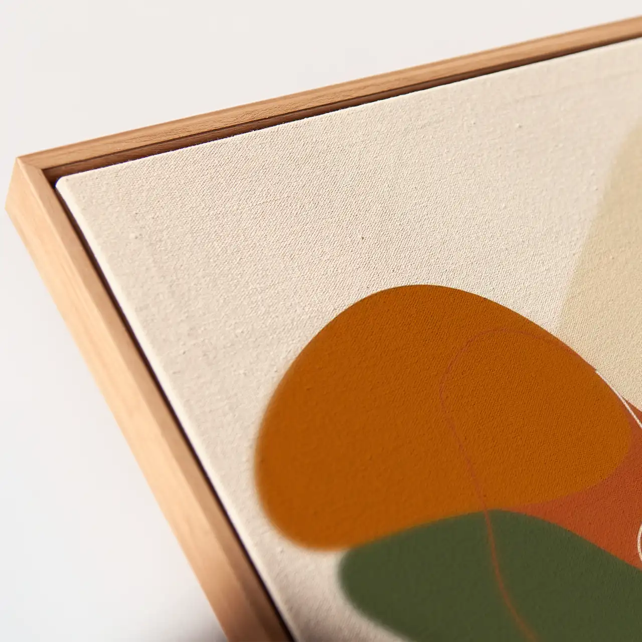 Kompozycja opiera się na kontrastach – subtelnej kresce i wyrazistych, organicznych formach barwnych. Jasne tło porządkuje całość i nadaje grafice nowoczesny, wyważony charakter, a forma obrazu na płótnie podkreśla jej dekoracyjny wymiar.