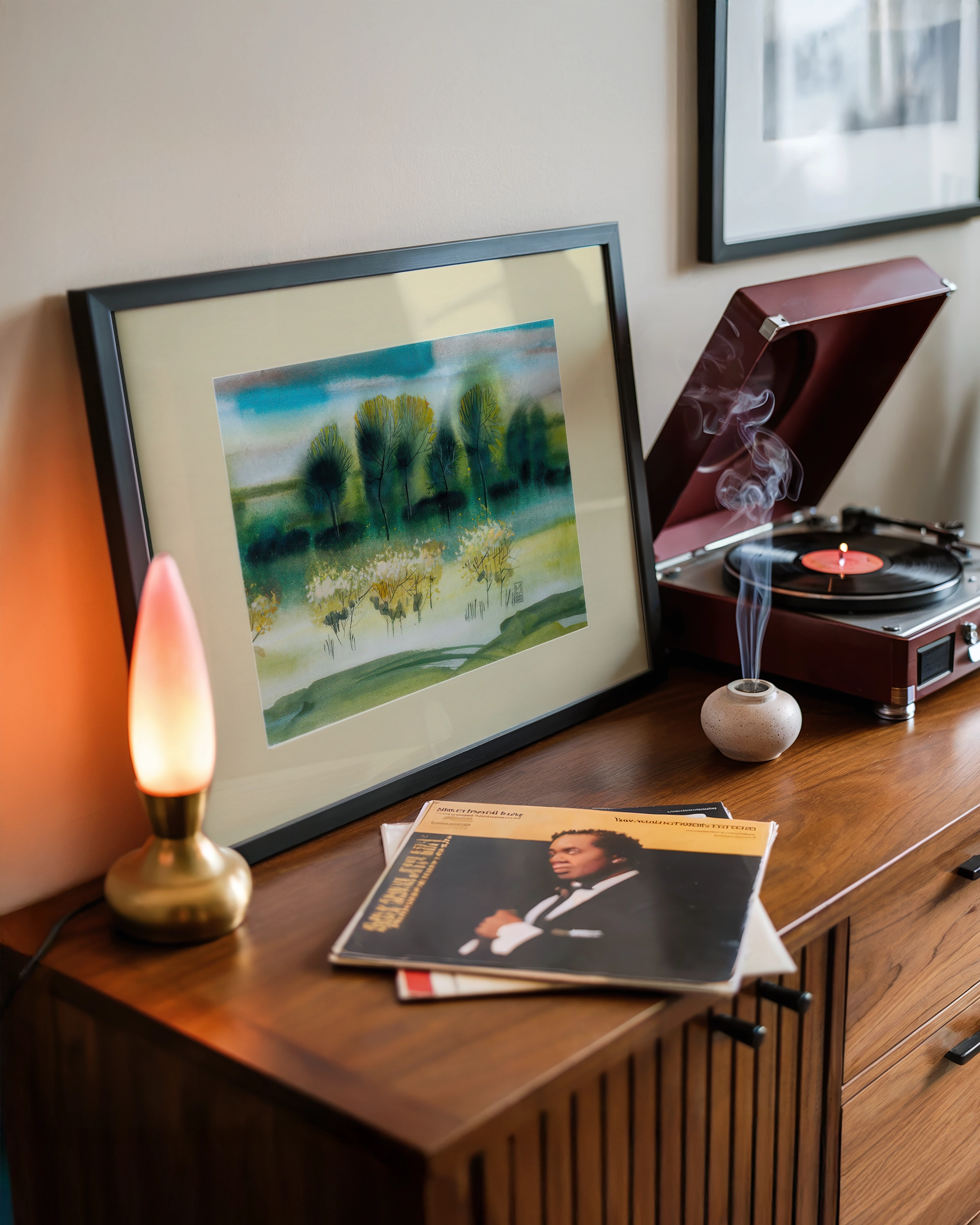 Naturalna czarna rama z drewna Ayous stanowi eleganczne dopełnienie kompozycji, tworząc obraz gotowy do zawieszenia i natychmiastowego ozdobienia ściany.