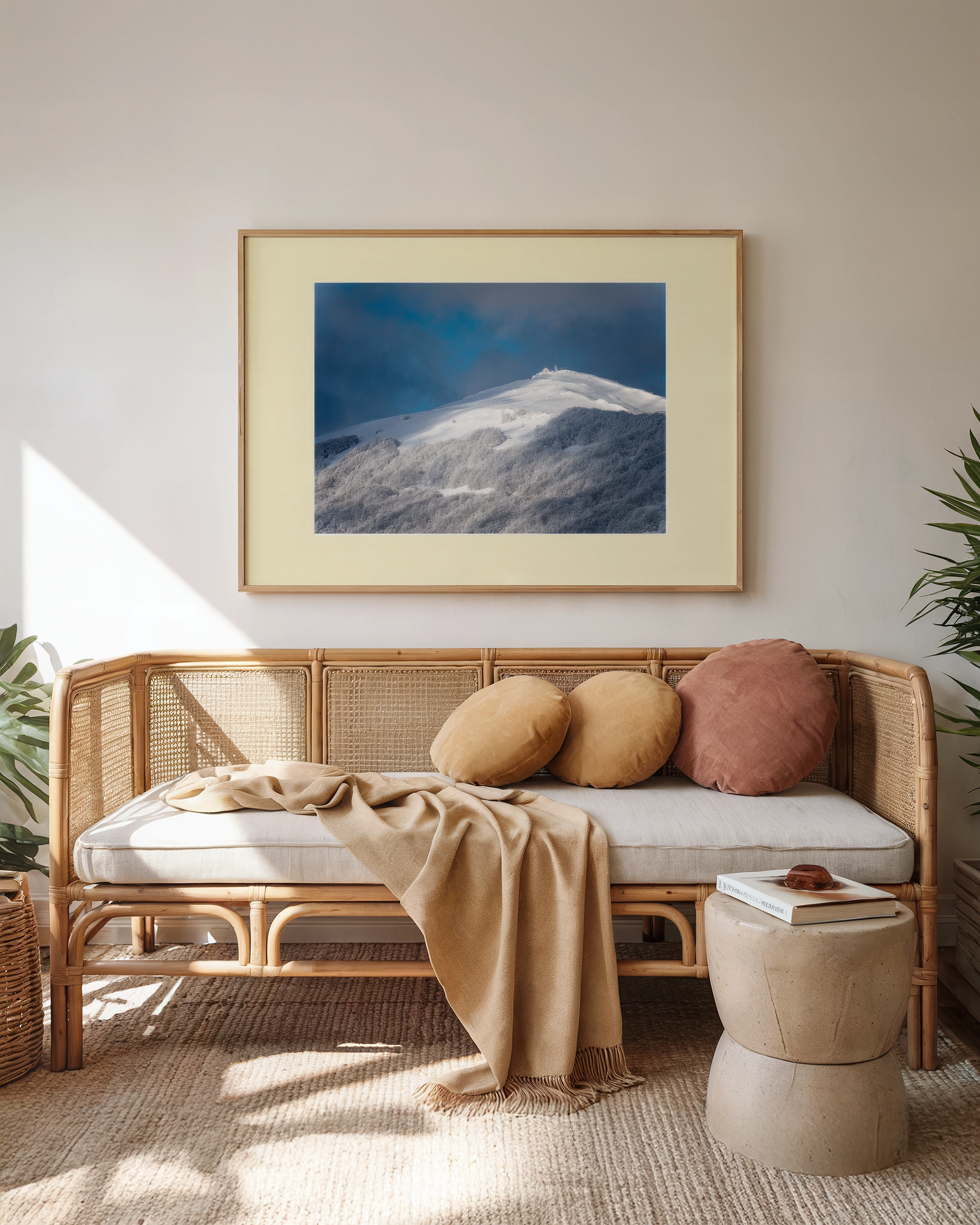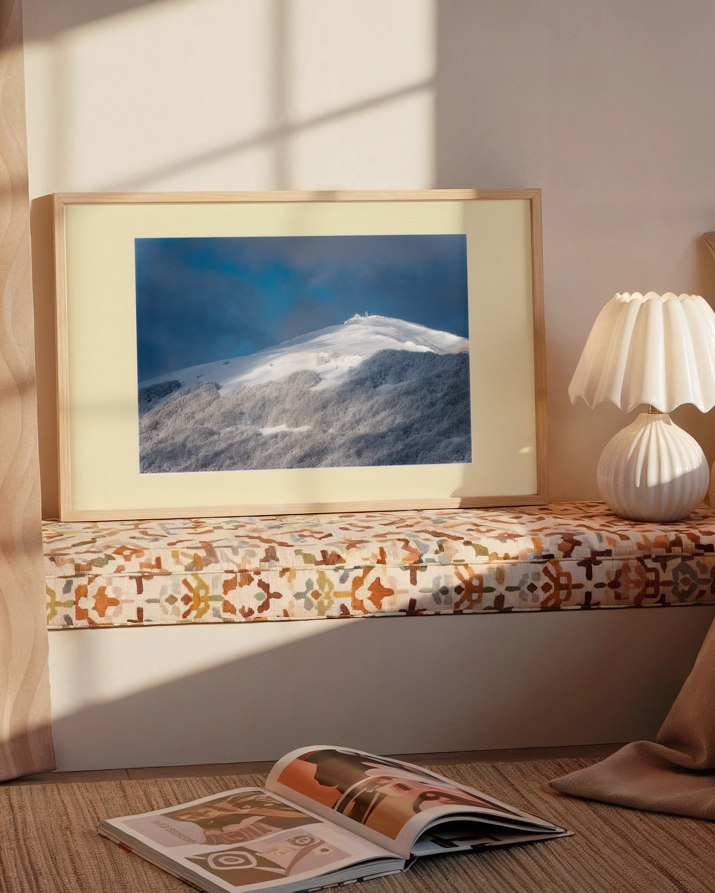 „Zimowy Szczyt” to obraz, który oddaje ciszę i majestat gór. Idealny dla miłośników natury i spokoju. Wydrukowany na papierze Hahnemühle William Turner 190 g/m², z delikatną strukturą, która nadaje mu głębi.