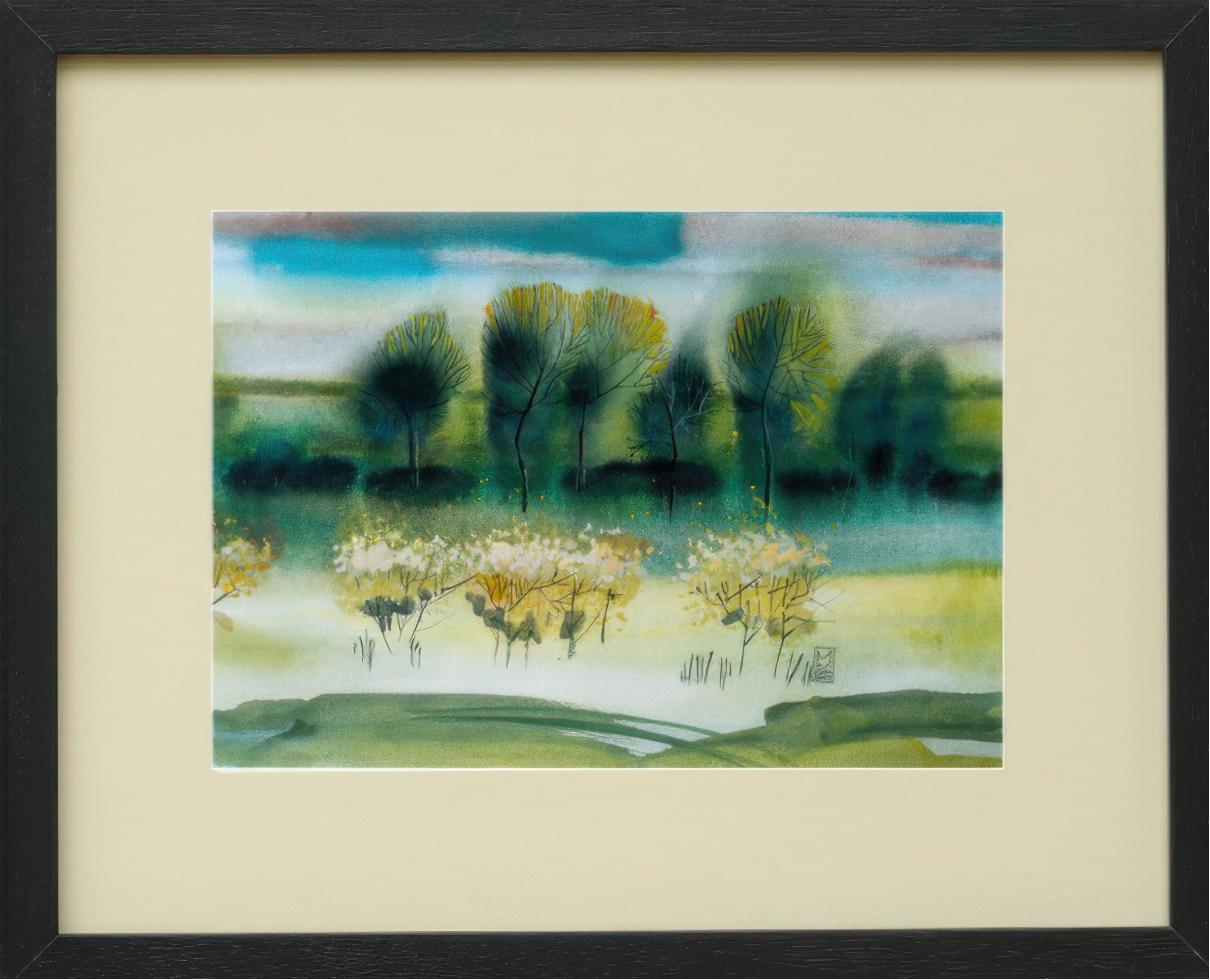Obraz uzupełnia czarne passe-partout (1,5 mm) i rama z naturalnego drewna Ayous, które dodają elegancji i podkreślają naturalny charakter kompozycji.
