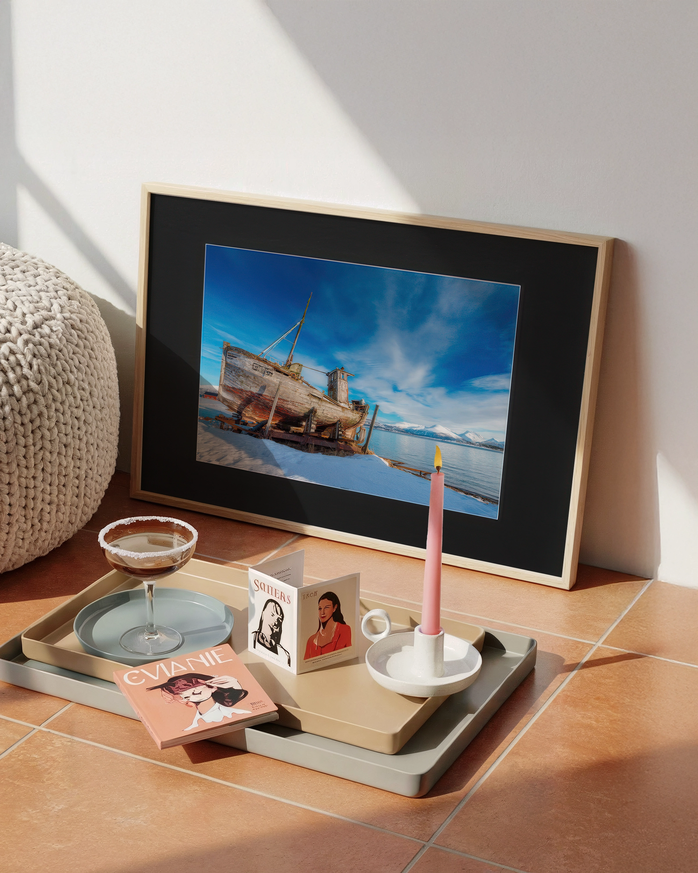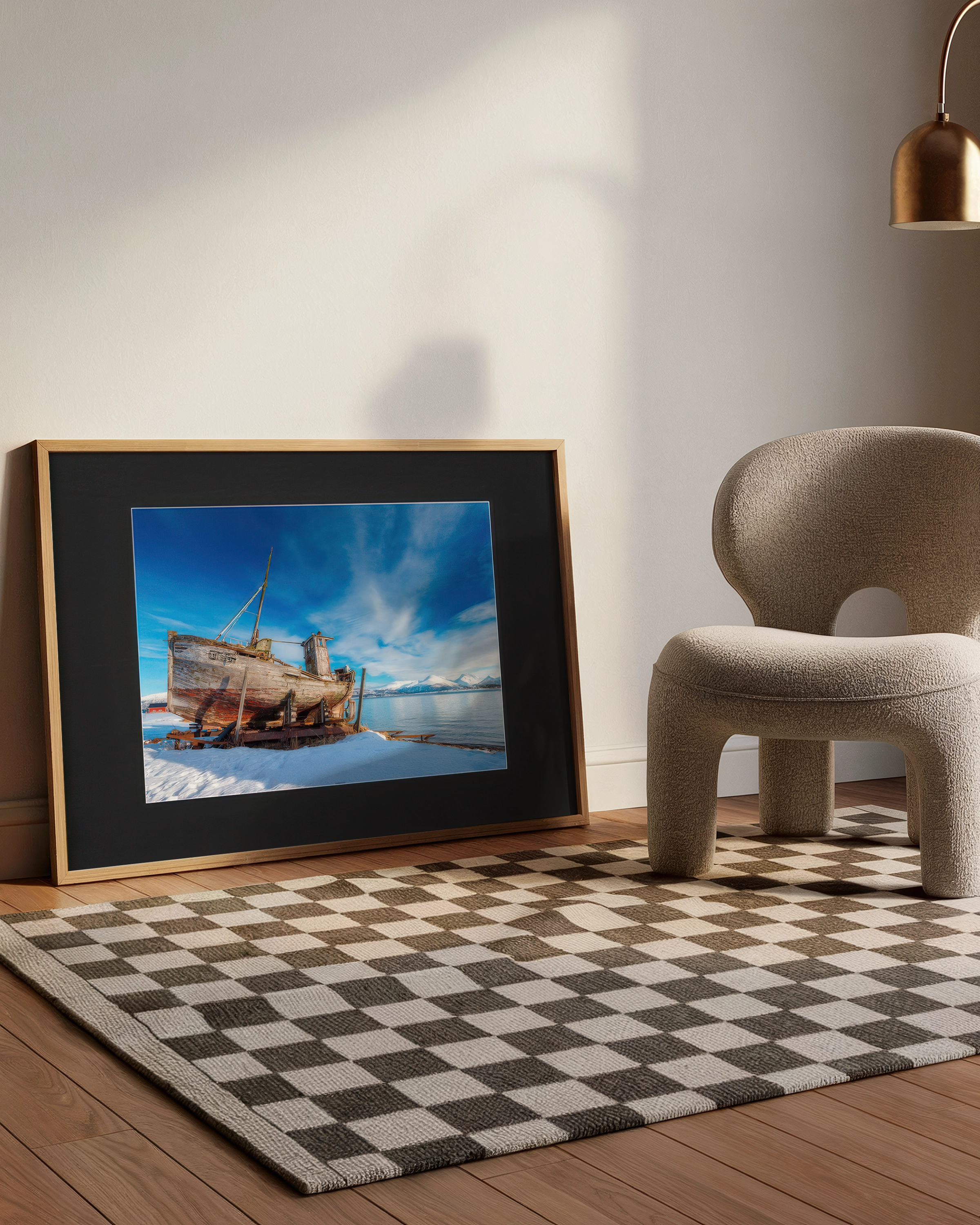 Naturalna rama z drewna Ayous oraz passe-partout w czerni (1,5 mm) dopełniają kompozycji, wprowadzając ponadczasową elegancję.