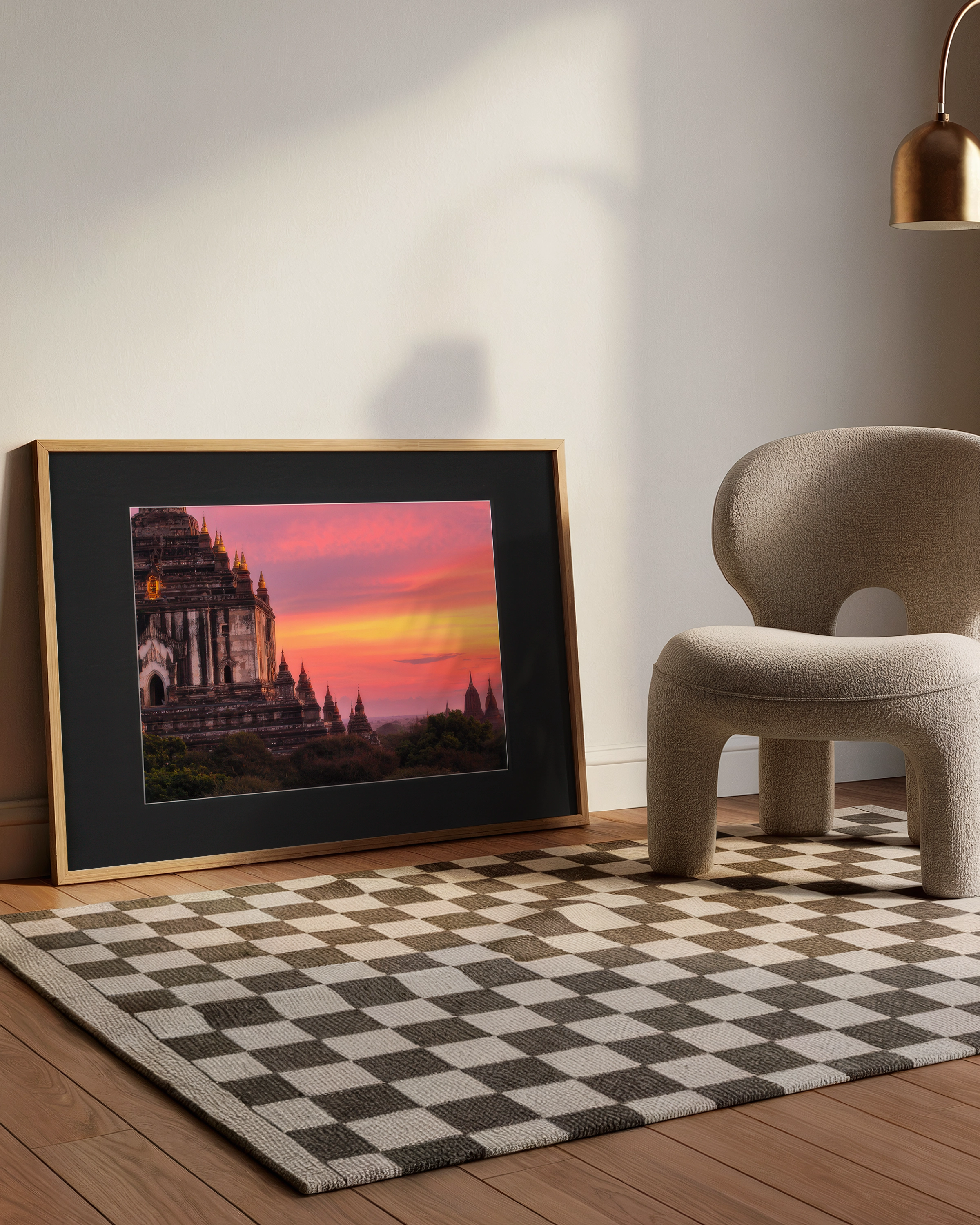 Czarne passe-partout (1,5 mm) i rama z drewna Ayous podkreślają głębię barw i dodają elegancji.