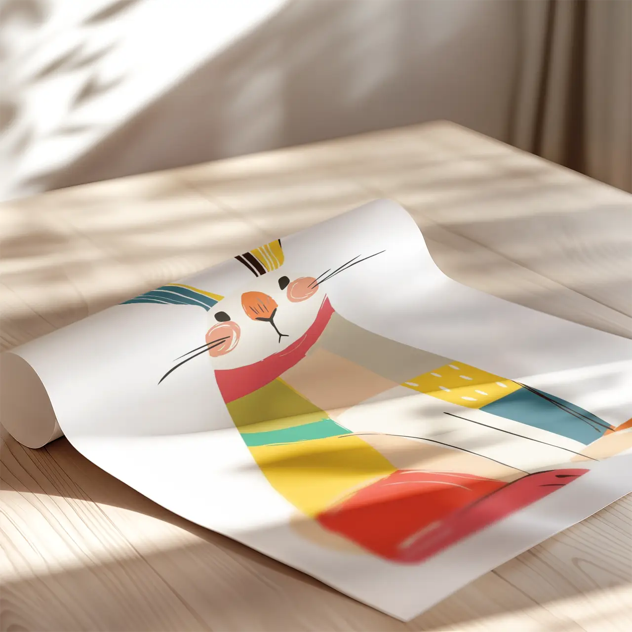 Plakat może funkcjonować jako pojedynczy, centralny element dekoracyjny lub jako część większej galerii ściennej z motywami zwierzęcymi. Dzięki wyraźnej sylwetce i kolorowym podziałom przyciąga uwagę, nie dominując całej przestrzeni.