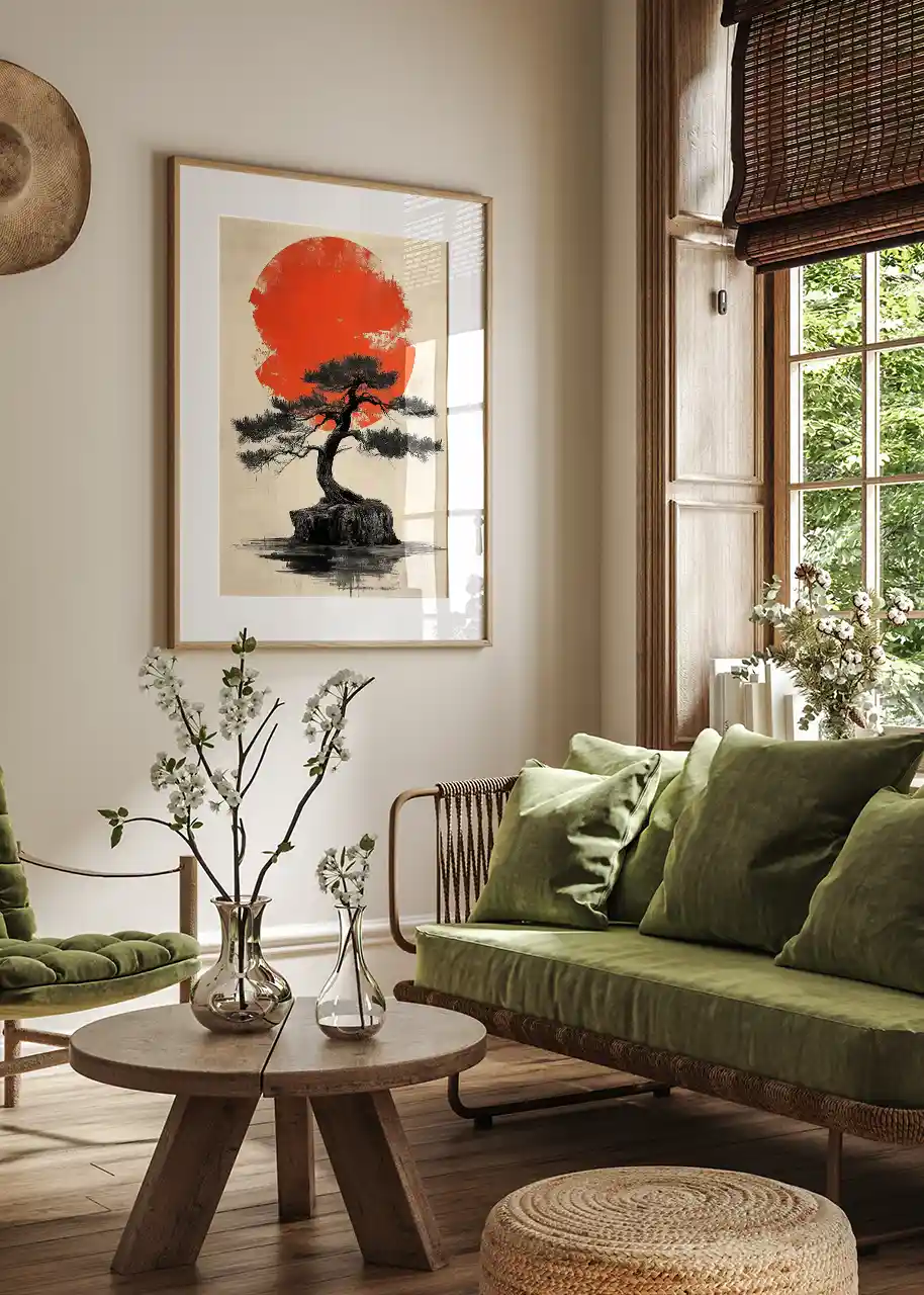 Plakat działa jako elegancki, uporządkowany akcent wizualny. Wprowadza do wnętrza harmonię i nowoczesny charakter inspirowany architekturą.