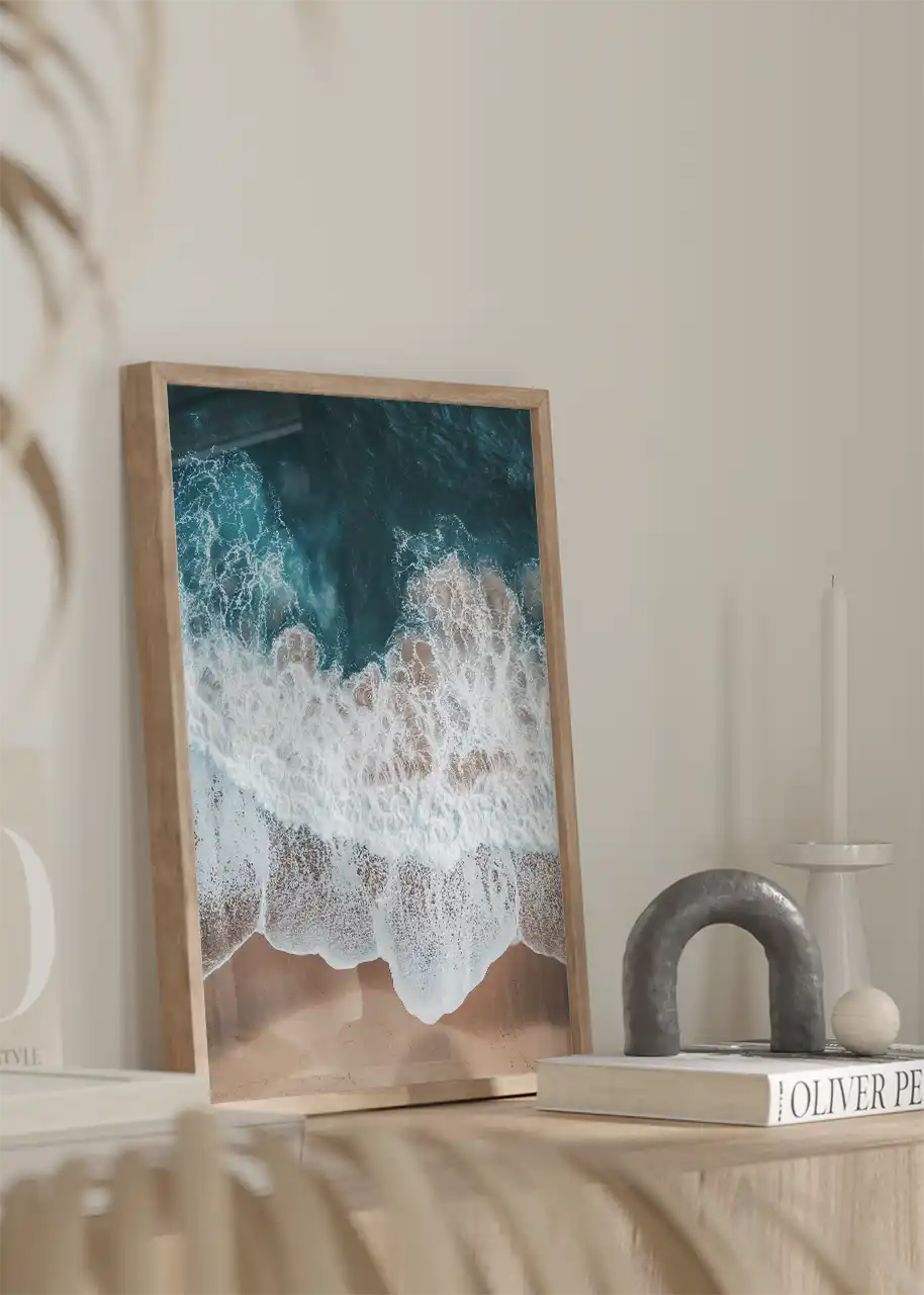 Podziwiaj słoneczne wybrzeże z lotu ptaka – widok, który koi zmysły i przenosi w świat błogiego relaksu. Spienione fale subtelnie muskają złocisty piasek, tworząc malowniczą kompozycję, która wprowadzi do Twojego wnętrza harmonię. Ten plakat to idealny wybór do salonu, sypialni czy domowego biura, gdzie stanie się nie tylko dekoracją, ale i codziennym przypomnieniem o pięknie otaczającego nas świata. Wykonany z najwyższą precyzją, plakat zachwyca bogactwem detali, które oddają każdy niuans tego pejzażu. Powieś go na ścianie i pozwól, by ten wyjątkowy widok stał się częścią Twojej codzienności.