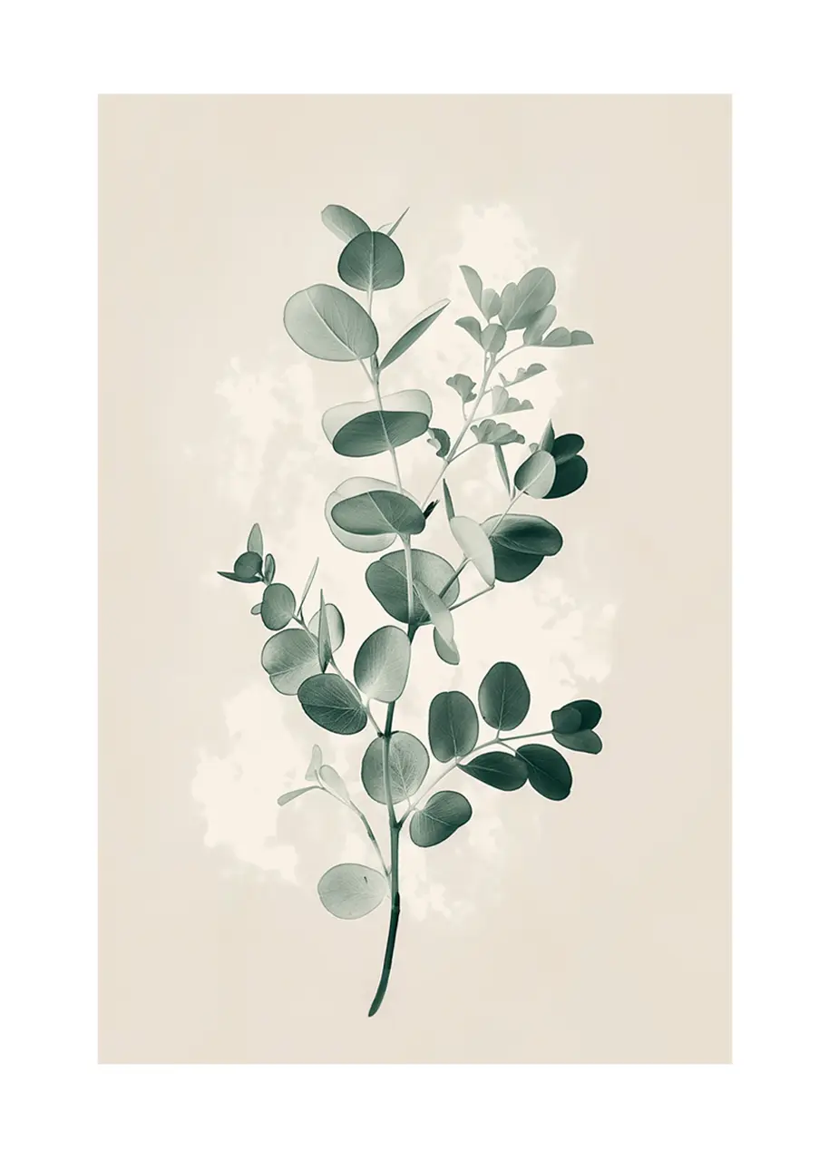 Subtelny plakat z gałązką i liśćmi na beżowym tle