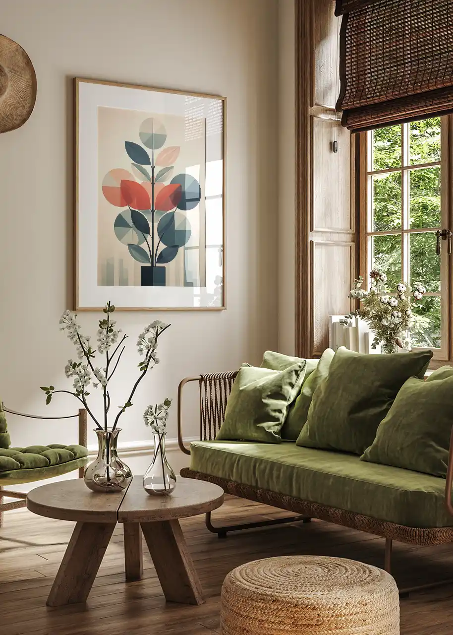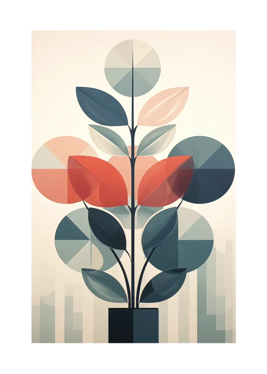 Oryginalny, nowoczesny plakat, który łączy organiczną formę roślin z matematycznym urokiem geometrii. To zbalansowana kompozycja dla miłośników niecodziennych, nieoczywistych grafik, która przemawia do miłośników natury, ceniących sobie porządek i symetrię. Jeżeli chcesz wprowadzić do swojego otoczenia element roślinny, ale w nowoczesnej formie, to ten plakat jest dla Ciebie.