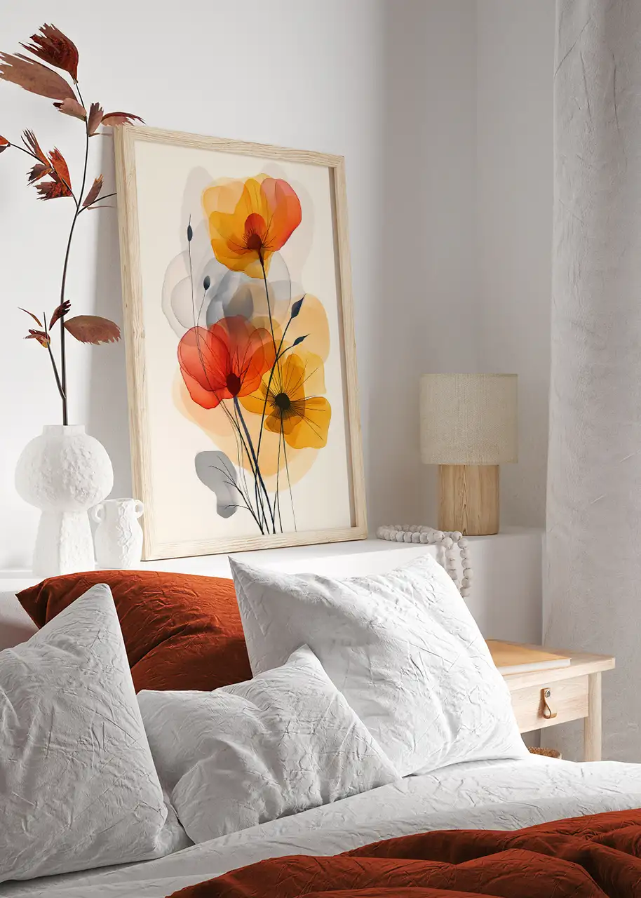 Plakat z motywem kwiatowym sprawdzi się jako obraz do salonu, jadalni, sypialni lub przestrzeni kreatywnej. Intensywne barwy mogą stanowić wyrazisty akcent we wnętrzach utrzymanych w neutralnej kolorystyce.