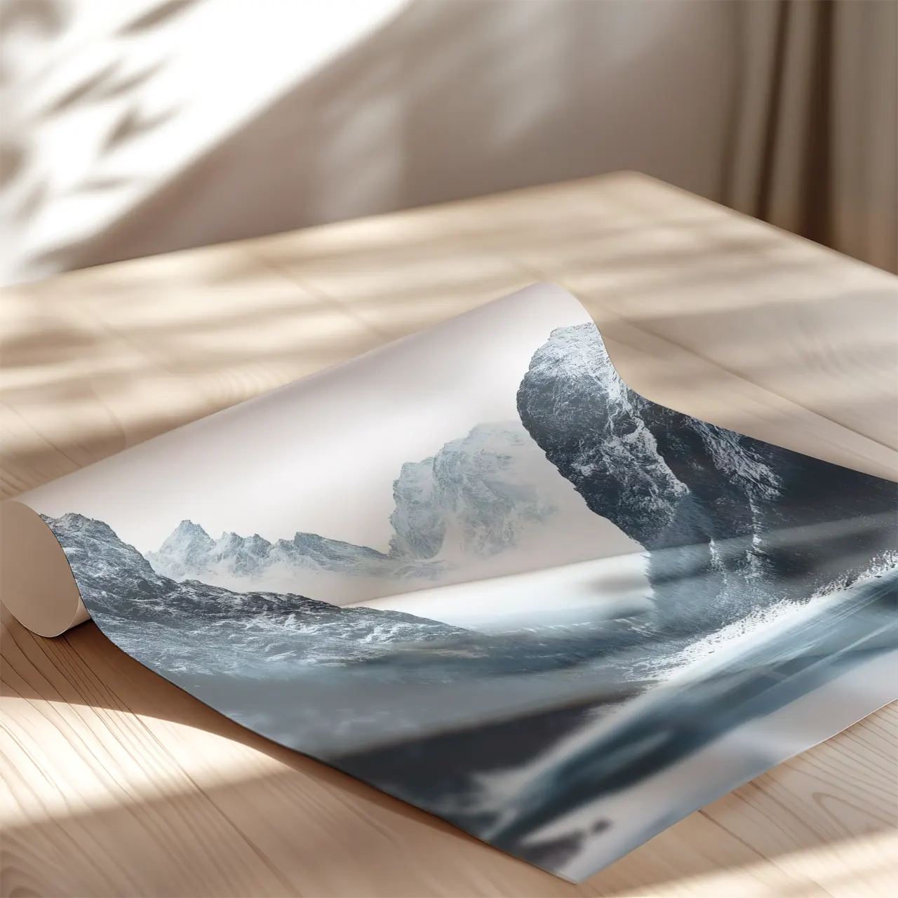 To grafika ścienna, która wprowadza do wnętrza przestrzeń, chłodną elegancję i wyciszony, naturalny akcent.
