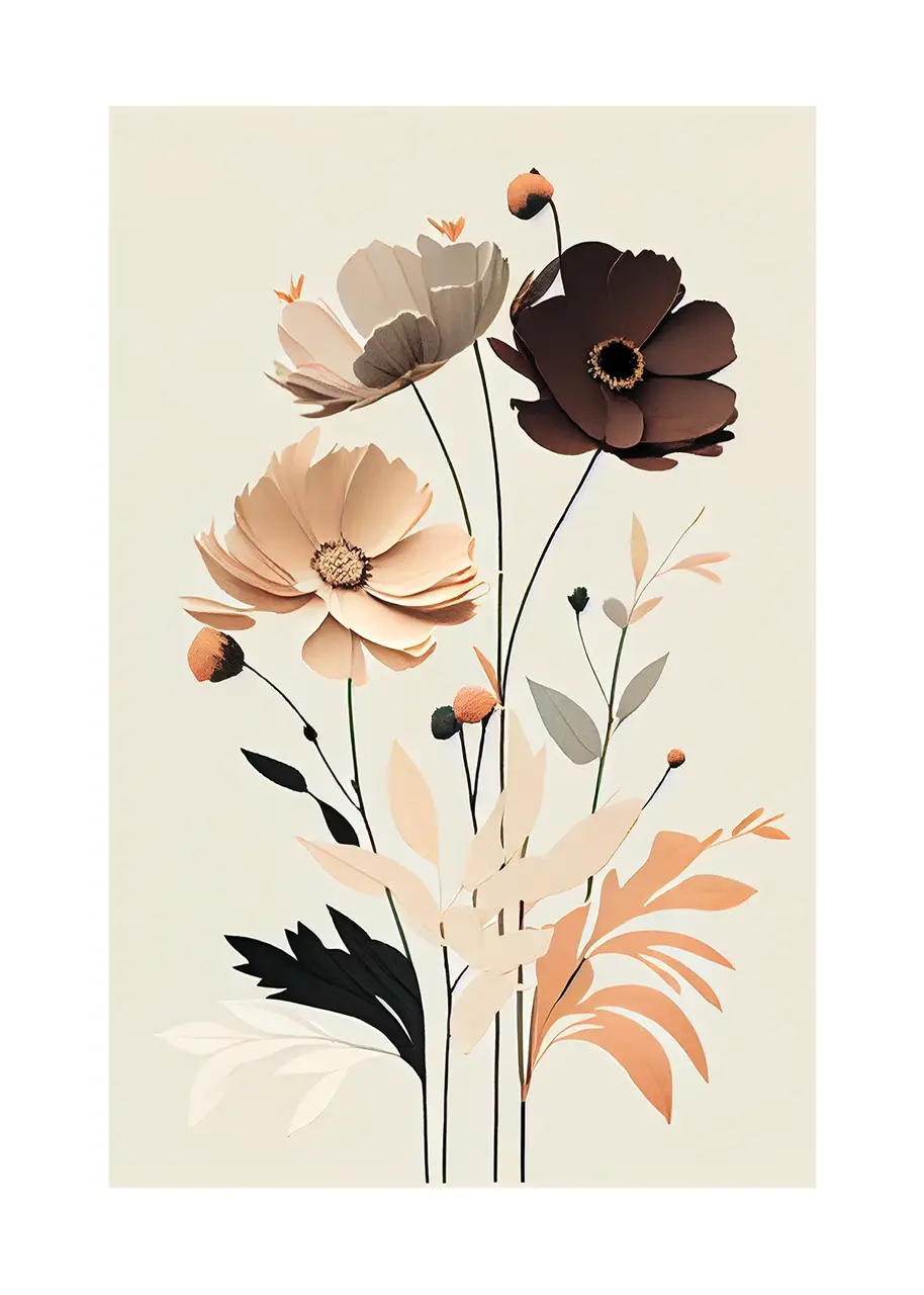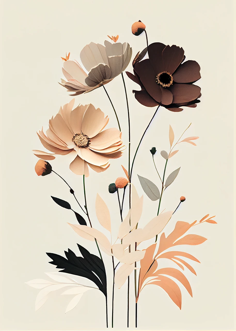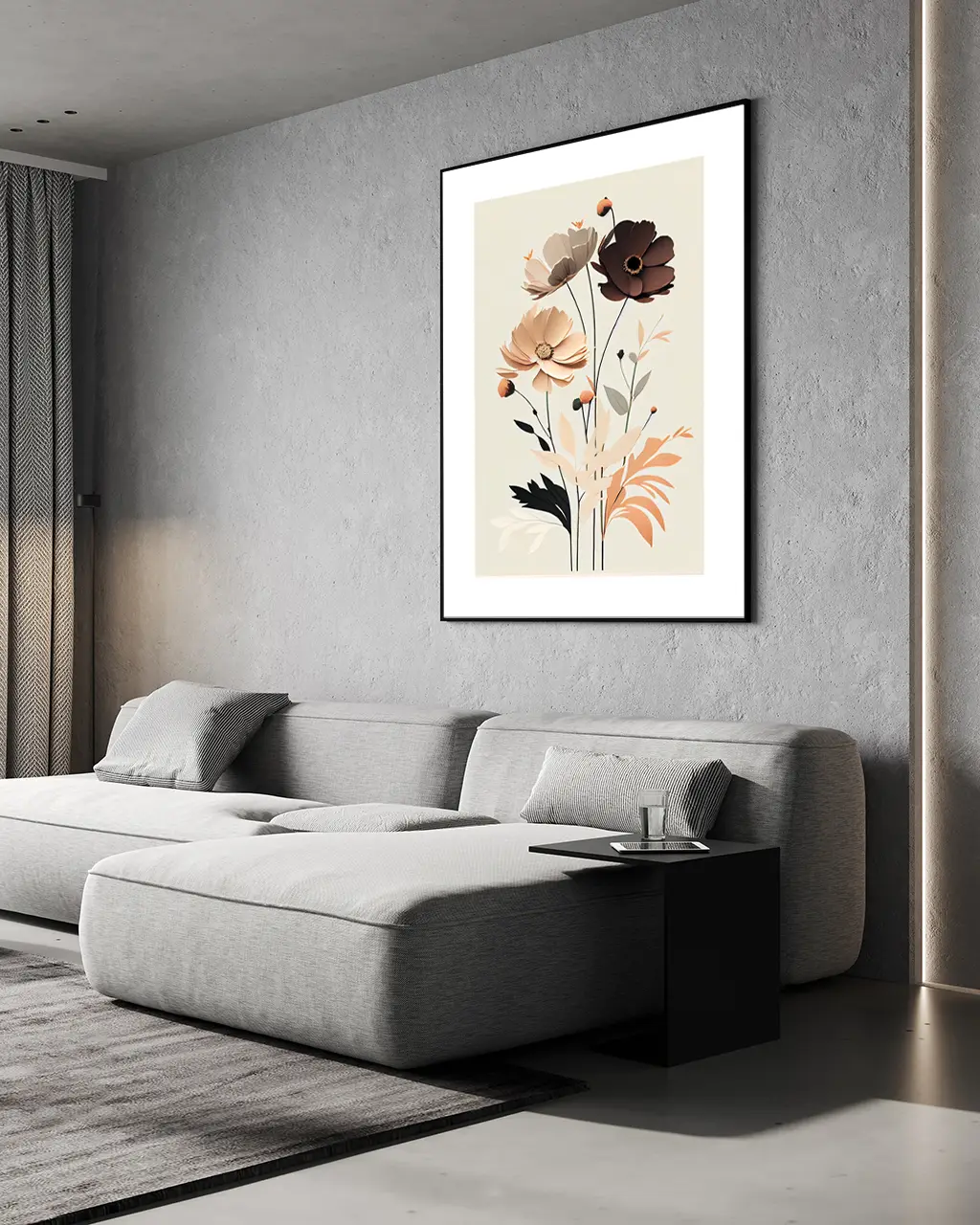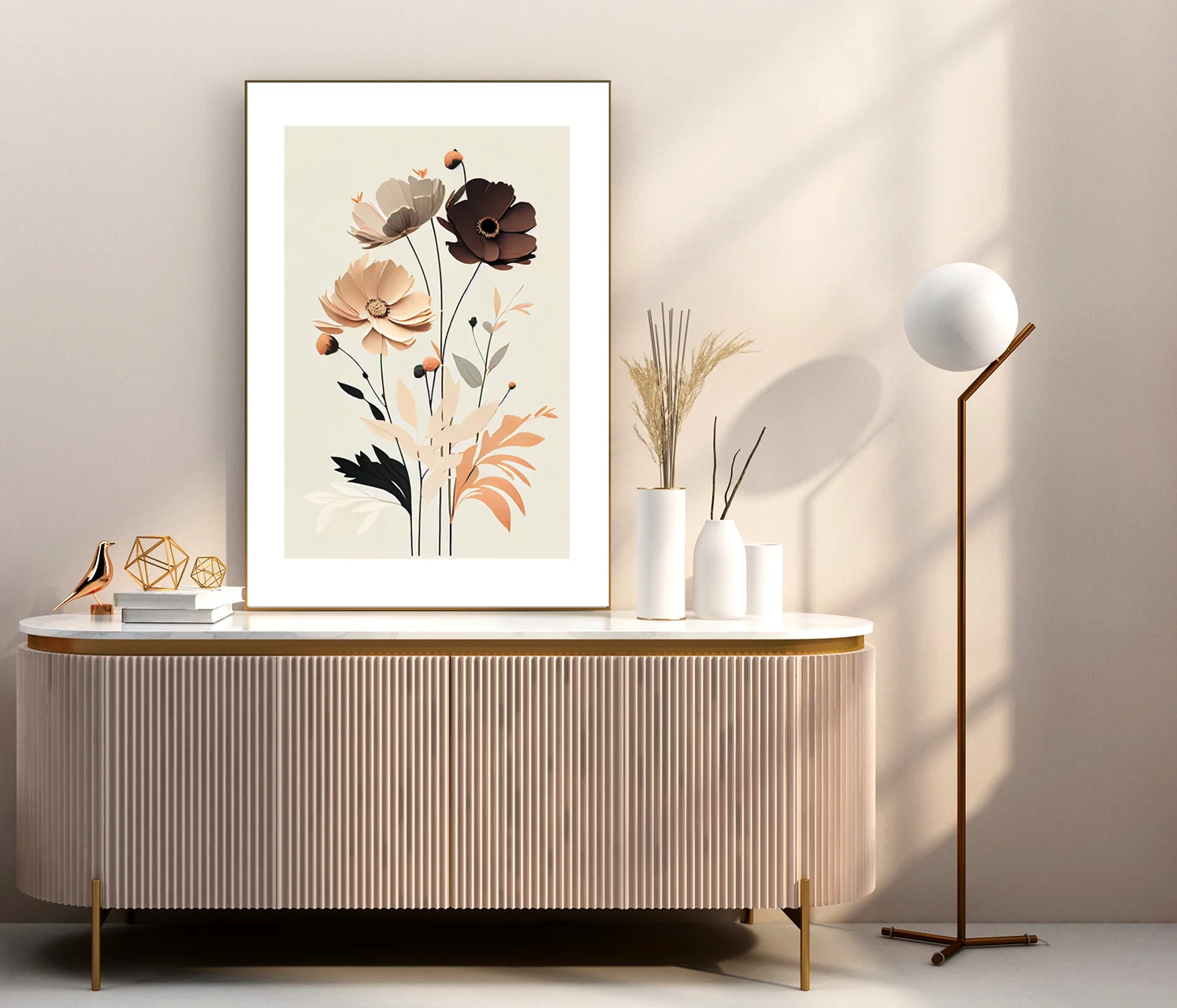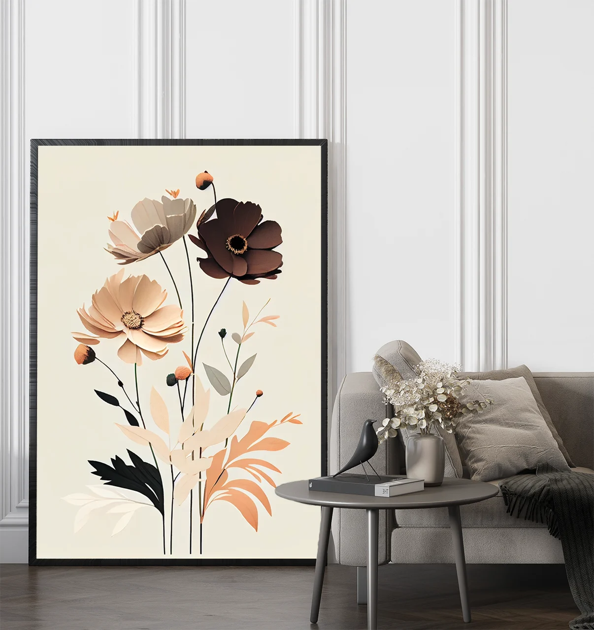 Plakat Miedziane kwiaty to wyjątkowa dekoracja ścienna, która łączy w sobie prostotę i elegancję. Delikatne, miedziane kwiaty pnące się w górę na beżowym tle tworzą spokojny i równocześnie wyrafinowany obraz, który będzie świetnym dopełnieniem każdego wnętrza.