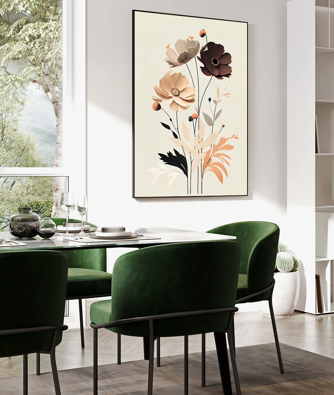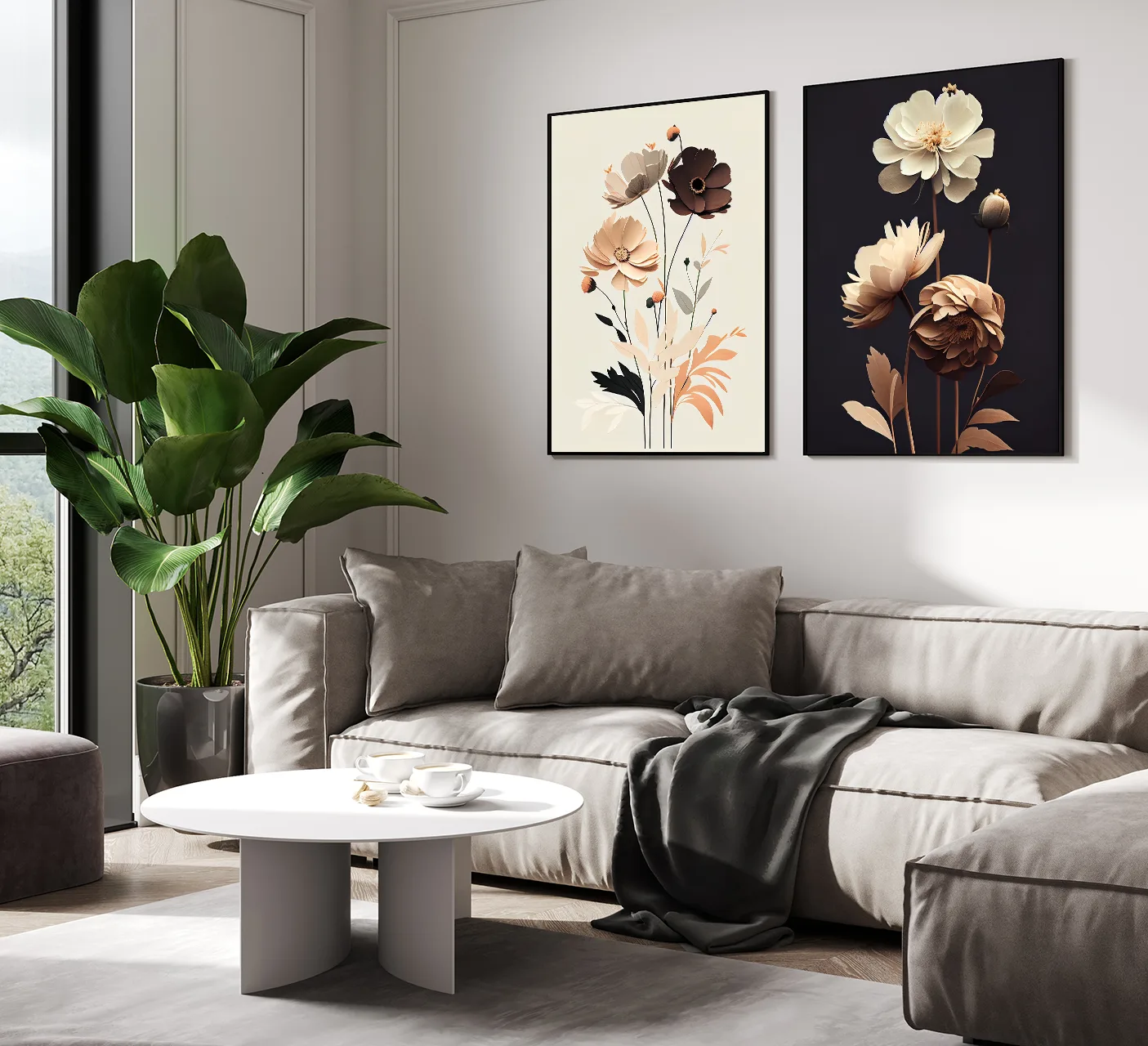 Ten plakat z motywem roślinnym pasuje doskonale pasuje do salonu lub sypialni. Uniwersalny i ponadczasowy charakter Miedzianych kwiatów sprawia, że mogą one ozdobić ścianę zarówno w nowoczesnym, jak i tradycyjnym pomieszczeniu, dodając mu elegancji i szyku.