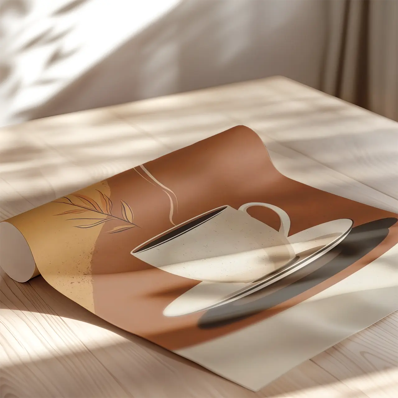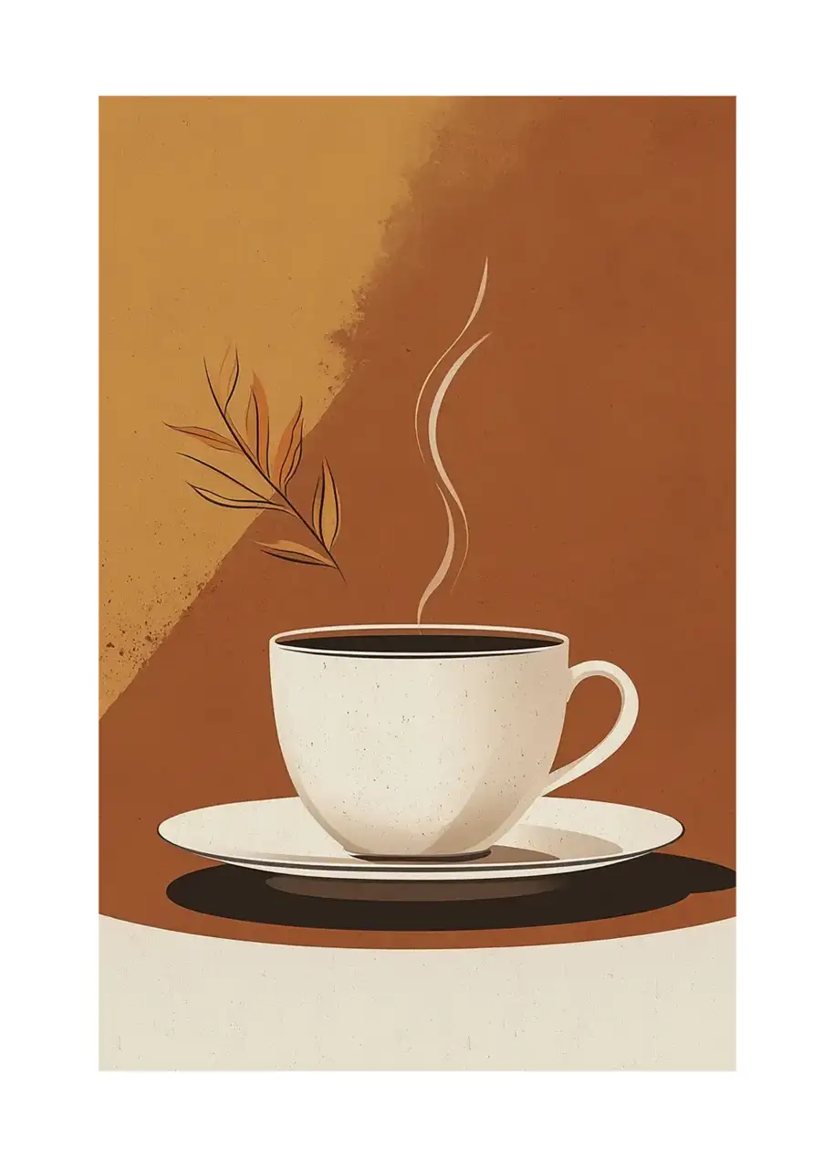 Plakat Naturalny aromat to spokojna, minimalistyczna kompozycja przedstawiająca filiżankę gorącego napoju – kawy lub herbaty. Delikatne kolory oraz subtelne linie sprawiają, że ten obraz budzi pozytywne skojarzenia i wprowadzi do Twojego wnętrza atmosferę relaksu i wyciszenia. Motyw liścia dodaje naturalnej harmonii, idealnie wpisując się w koncepcję przestrzeni stworzonej do odpoczynku. To plakat, który doskonale sprawdzi się w kuchni, jadalni i każdym innym miejscu, gdzie lubisz się wyciszyć przy filiżance ulubionego napoju. To wyjątkowa dekoracja ścienna, która uzupełni każde wnętrze subtelną nutą elegancji.