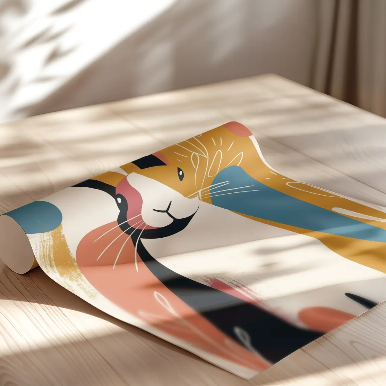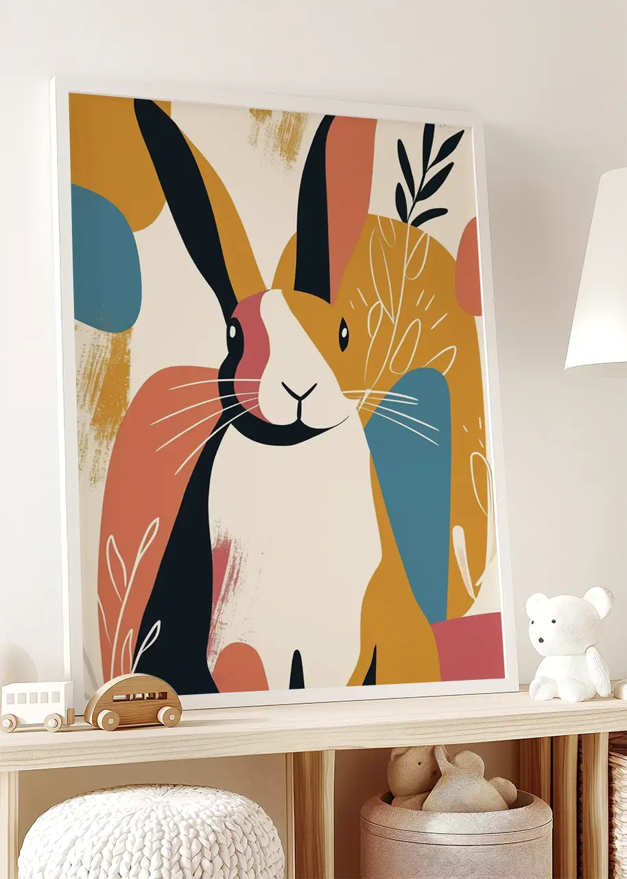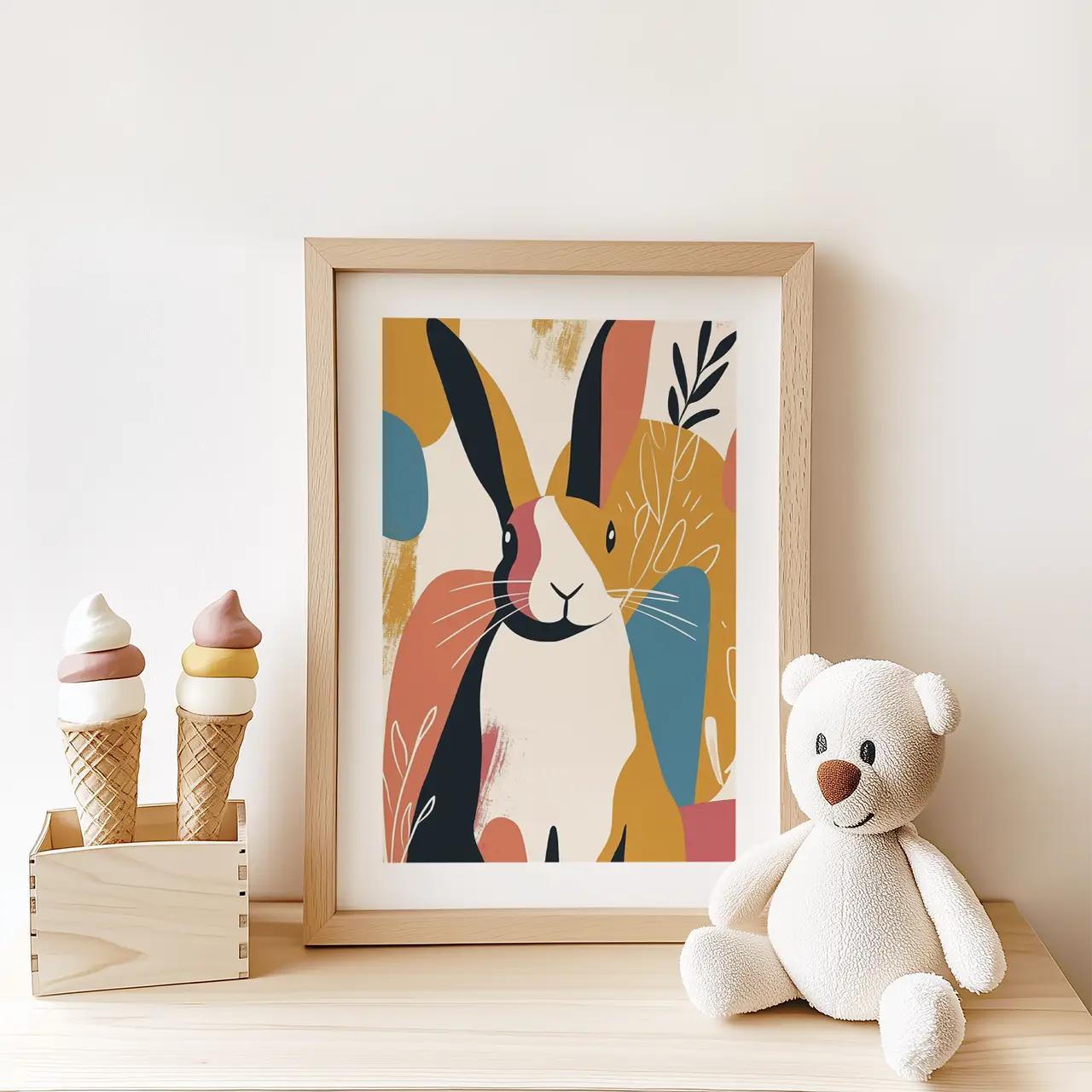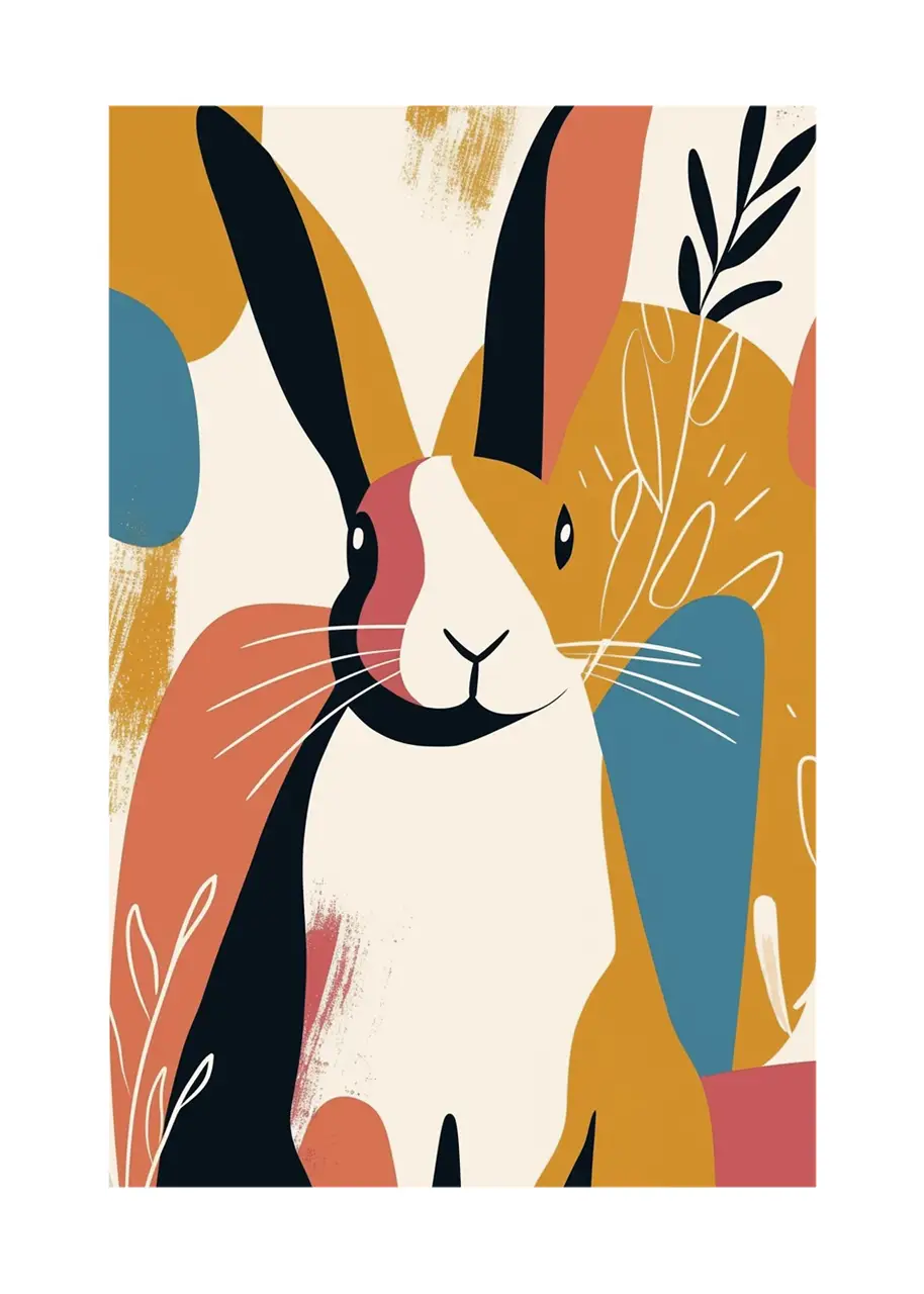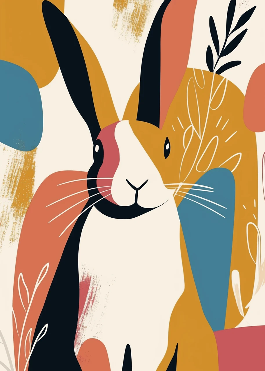 Pastelowy plakat z zającem na abstrakcyjnym tle