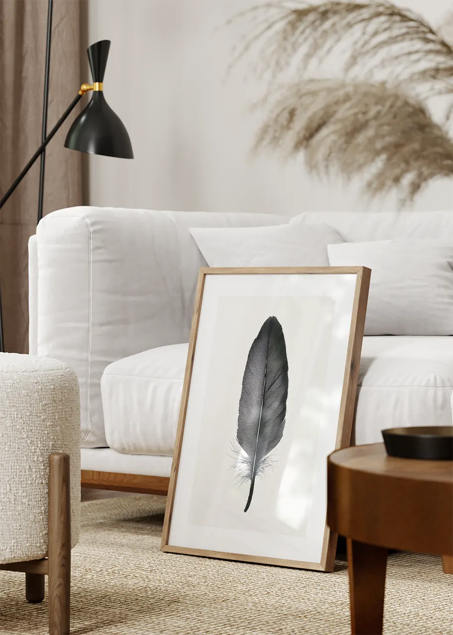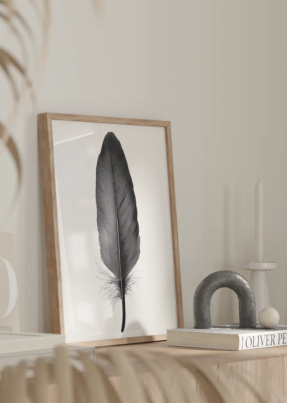 „Pióro IV” to nowoczesna grafika ścienna o uniwersalnym charakterze. Prosta forma i ograniczona kolorystyka sprawiają, że plakat łatwo dopasować do różnych wnętrz.