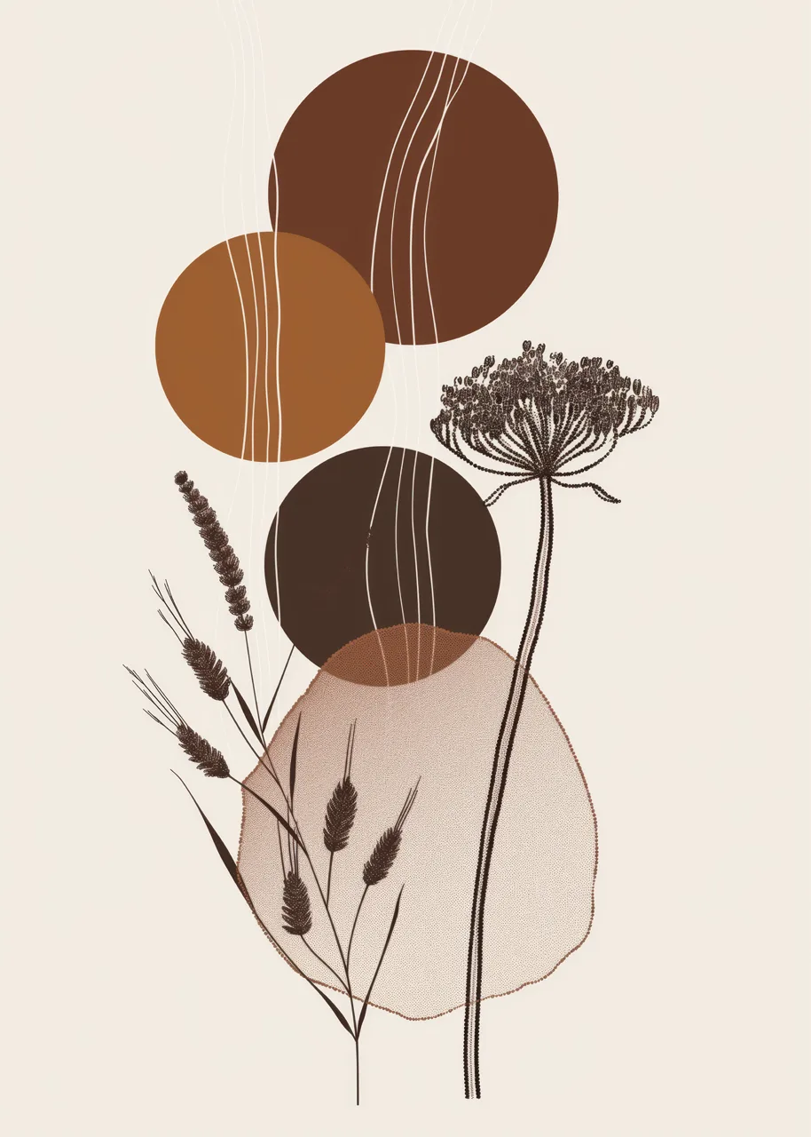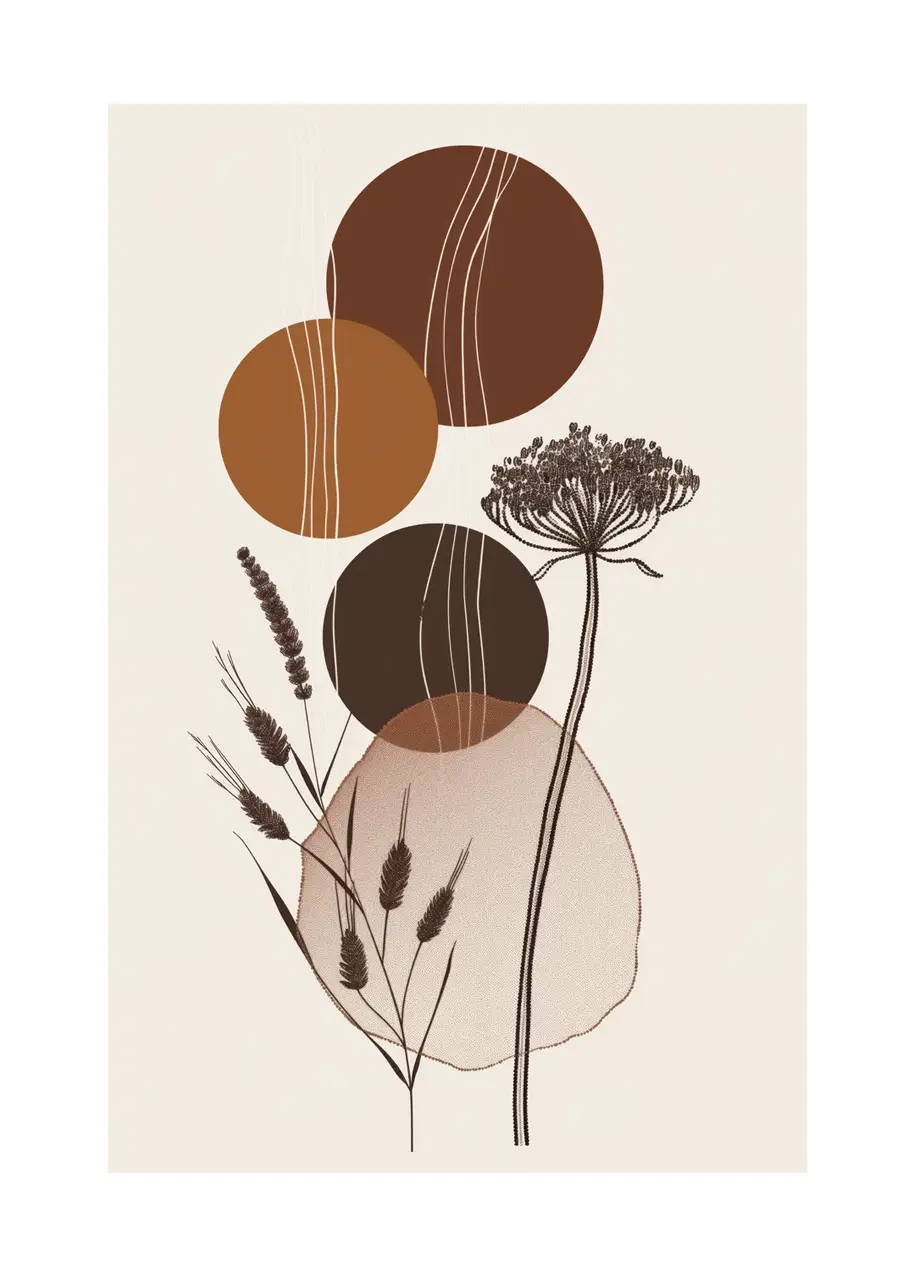 Styl plakatu łączy minimalizm z nowoczesną ilustracją botaniczną i elementami abstrakcji. Proste linie oraz ograniczona liczba detali budują elegancki i ponadczasowy efekt.