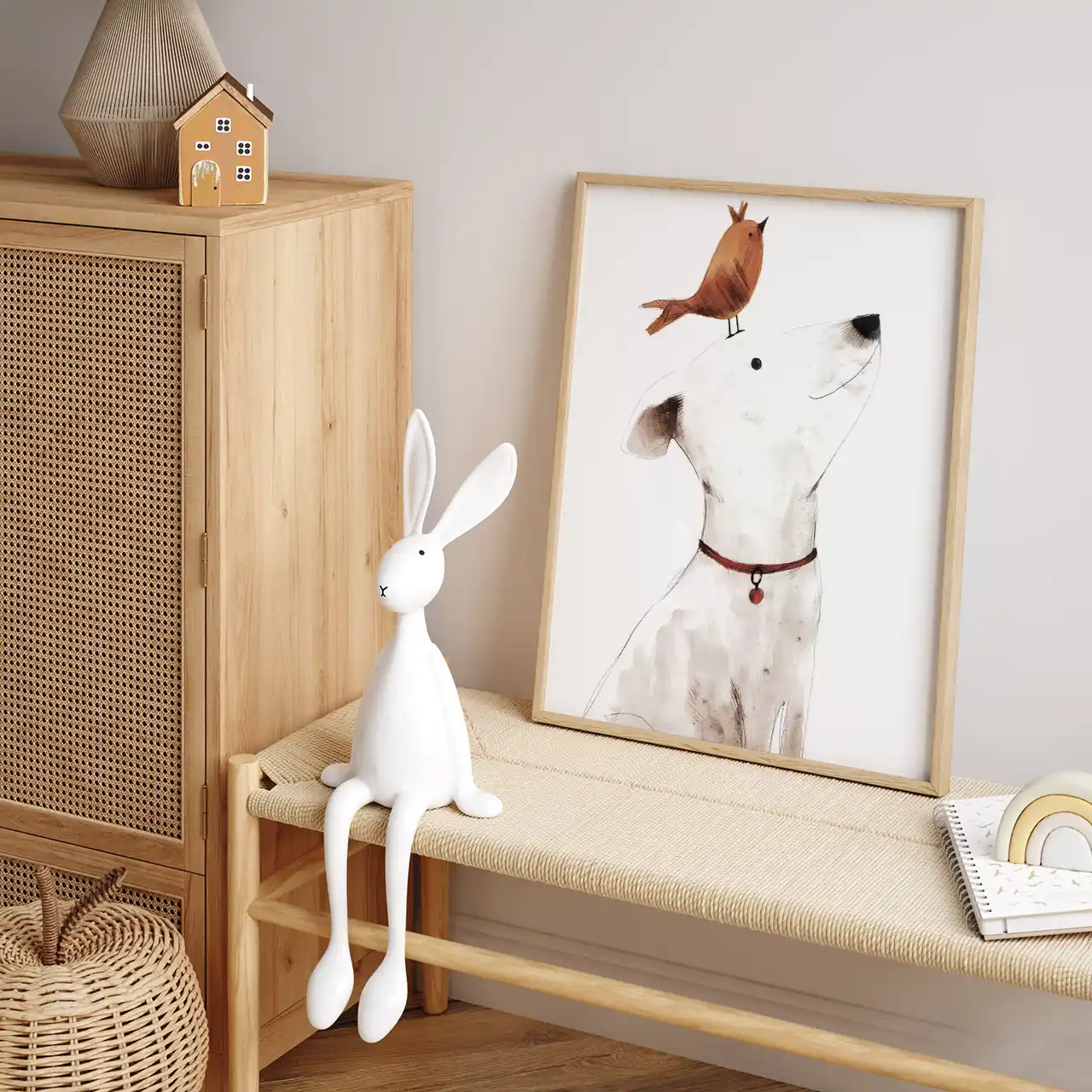 Plakat idealnie sprawdzi się w pokoju dziecka, pokoju niemowlęcym lub w przestrzeni zabaw. Delikatna ilustracja wprowadza do wnętrza ciepło, spokój i przyjazny charakter.