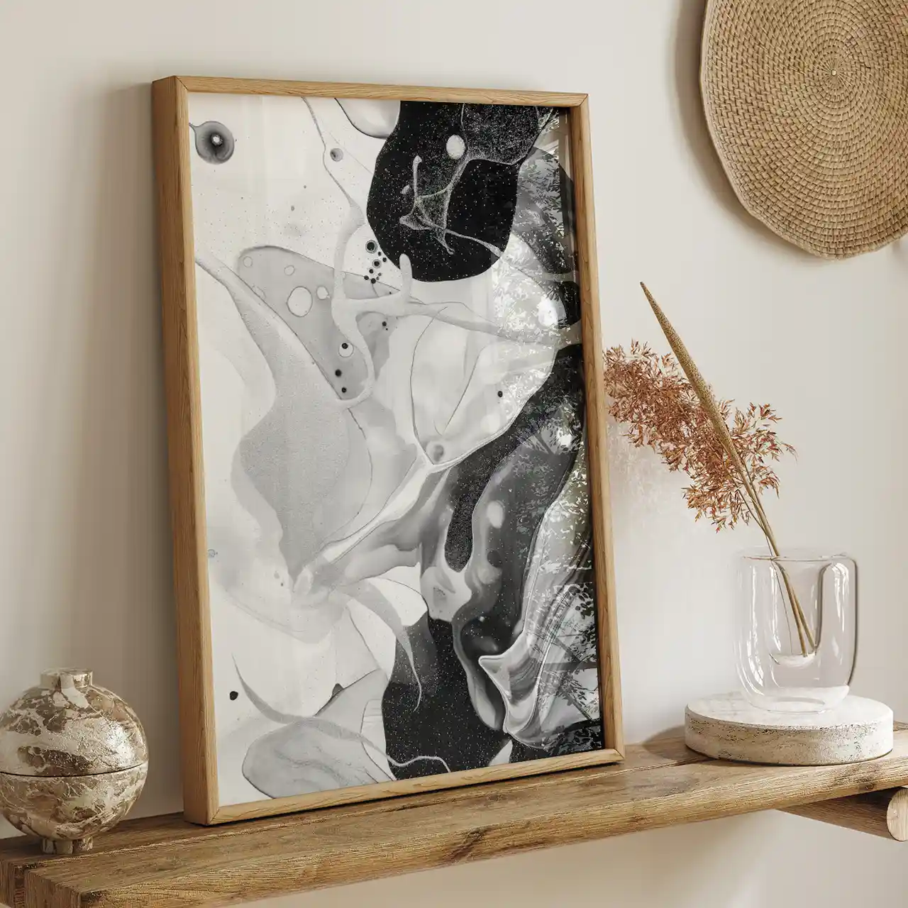 Seria plakatów Rozlane akryle przeniesie Cię w świat płynnych przejść i organicznych kształtów, gdzie, na pozór losowo ułożone linie i plamy tworzą harmonijną kompozycję. Te hipnotyzujące wzory, niczym rzeki akrylu na płótnie, zachwycają delikatnością i subtelnością, a jednocześnie wciągającą dynamiką. Każdy z naszych plakatów z tej abstrakcyjnej serii rozpala wyobraźnię przemawiając językiem nieoczywistej estetyki, potrafiąc wywołać uczucie spokoju lub pobudzenia – w zależności od nastroju odbiorcy. Idealne do każdej przestrzeni – od nowoczesnych salonów, po przytulne sypialnie, są świadectwem tego, jak abstrakcyjna sztuka potrafi wpływać na nastrój i zmieniać lub podkreślać atmosferę wnętrza.