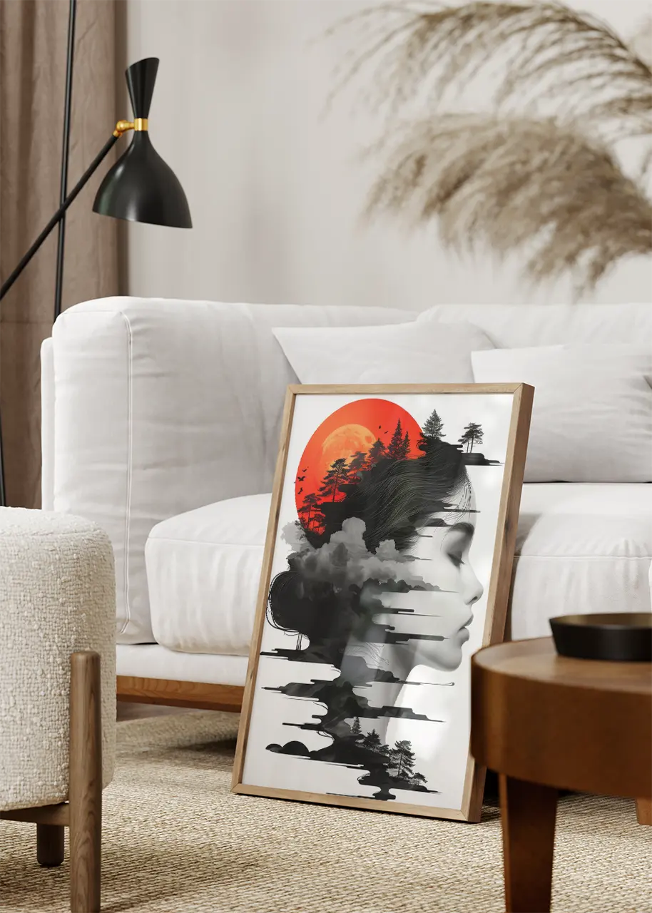 Może funkcjonować jako centralny punkt aranżacji lub element galerii plakatów o tematyce emocji i natury.