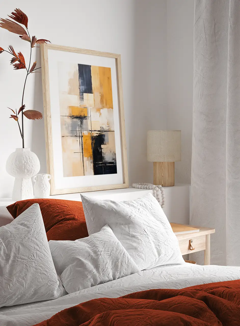 Plakat doskonale sprawdzi się jako dekoracja ścienna w salonie, sypialni, gabinecie lub nowoczesnej przestrzeni biurowej. Harmonijna kolorystyka sprawia, że grafika może stanowić elegancki element aranżacji wnętrza.