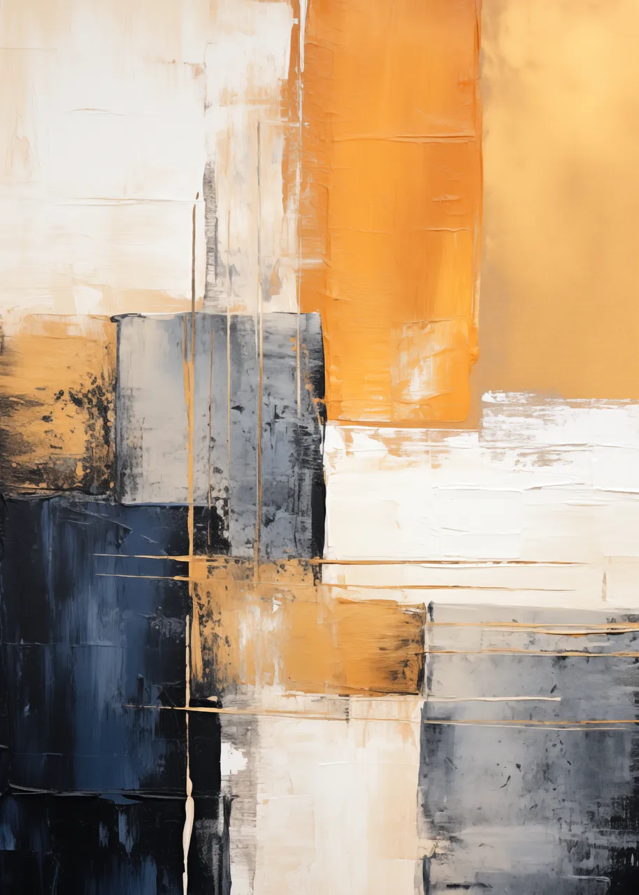 Dominującą bazę kompozycji stanowią jasne odcienie bieli i beżu, które kontrastują z głębokimi fragmentami granatu oraz intensywnymi akcentami żółci. Takie zestawienie kolorów nadaje grafice energii, jednocześnie zachowując jej elegancki i harmonijny wygląd.
