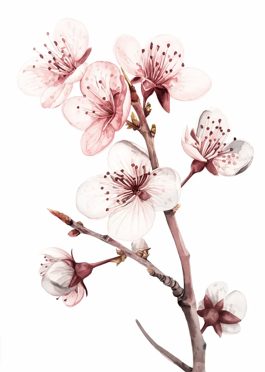 Głównym motywem obrazu jest kwiat wiśni w fazie rozkwitu. Delikatne płatki oraz starannie odwzorowane detale budują wrażenie świeżości i kruchości natury.