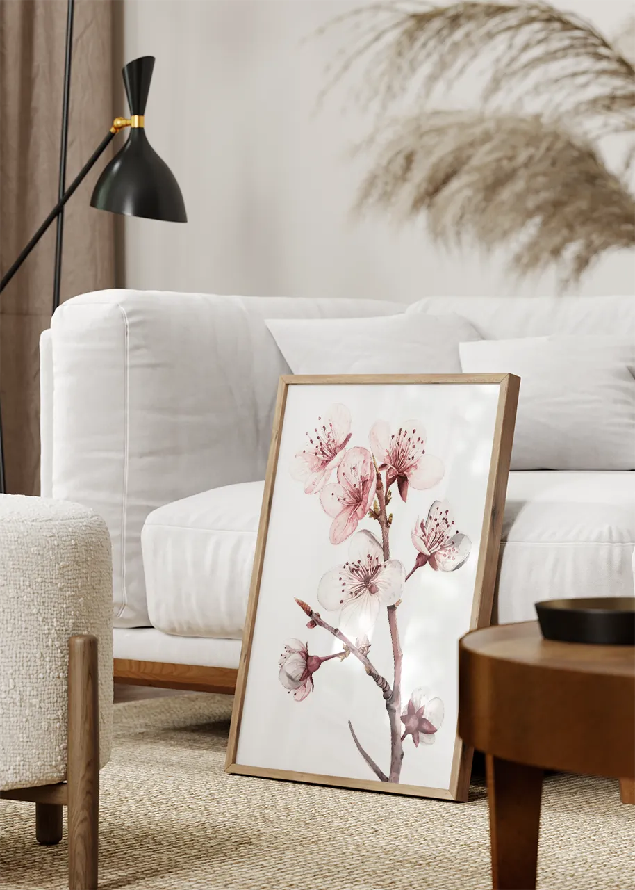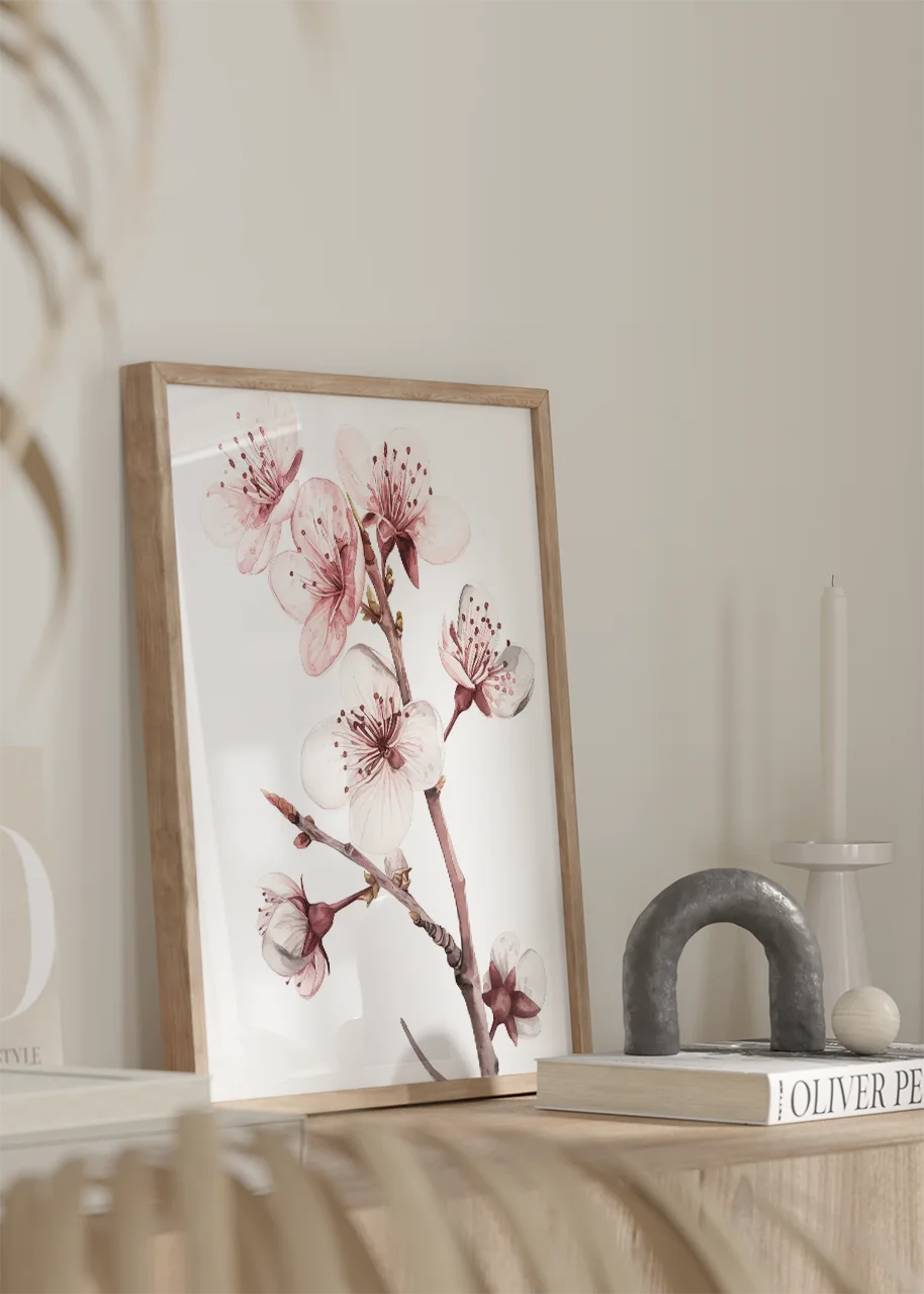 Jako dekoracja wnętrza plakat wprowadza lekki, świeży akcent florystyczny. Motyw kwitnącej gałązki nadaje przestrzeni subtelności i harmonii.