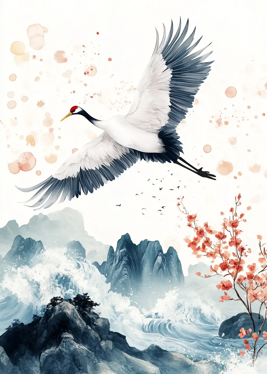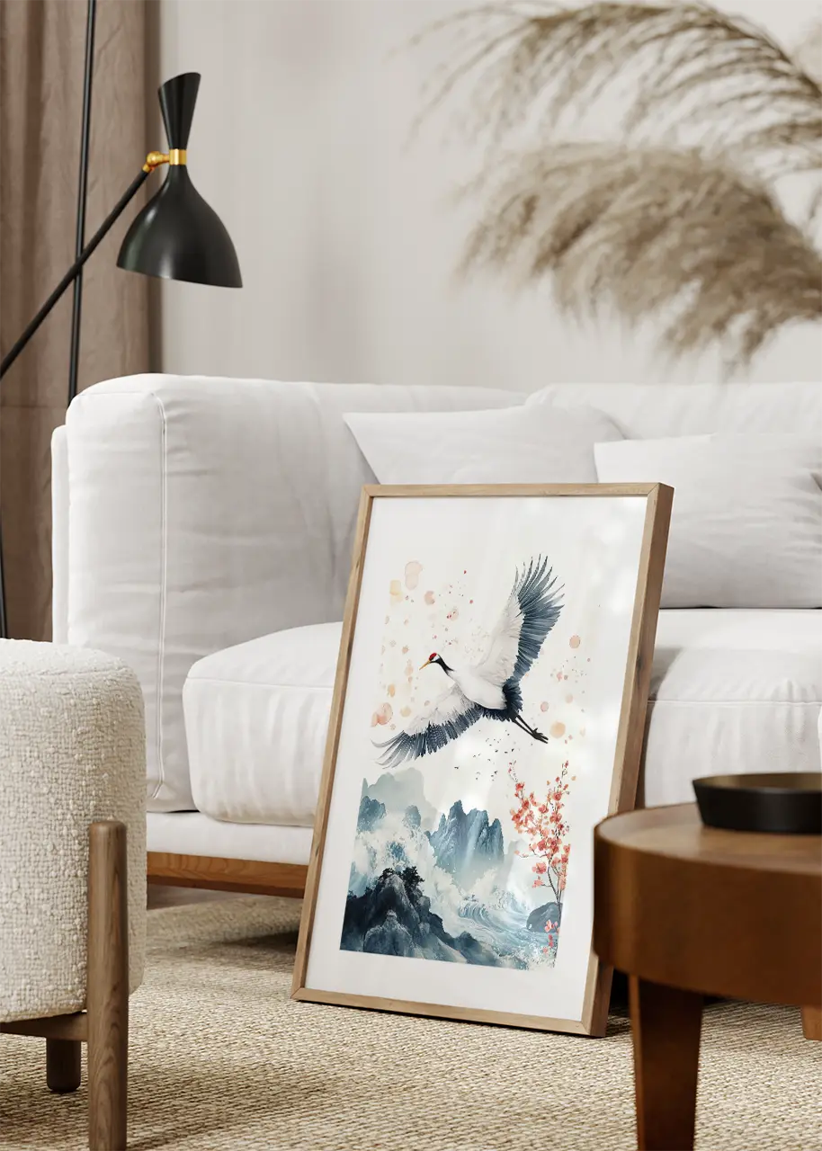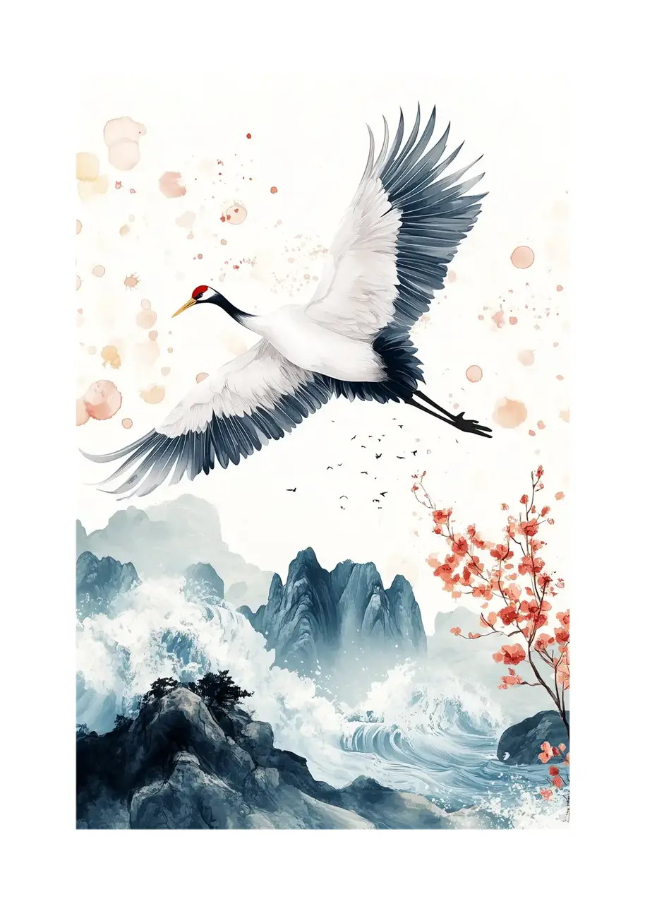 Plakat z lecącym żurawiem