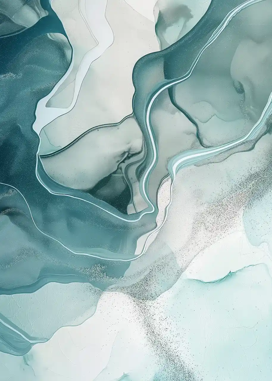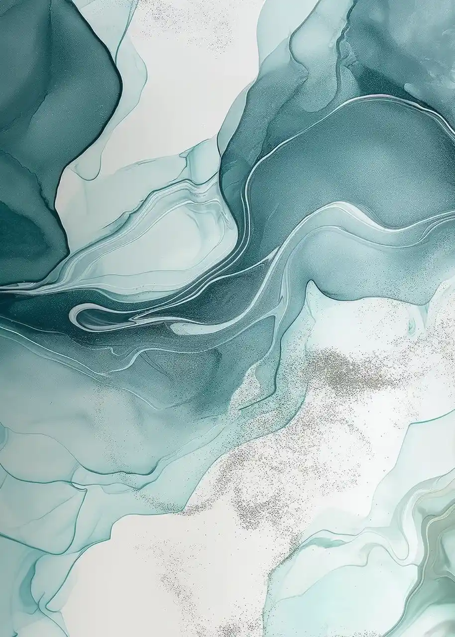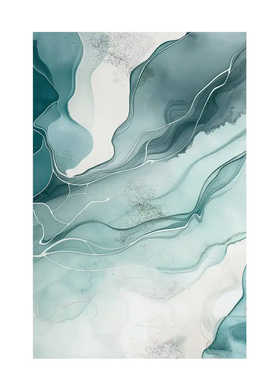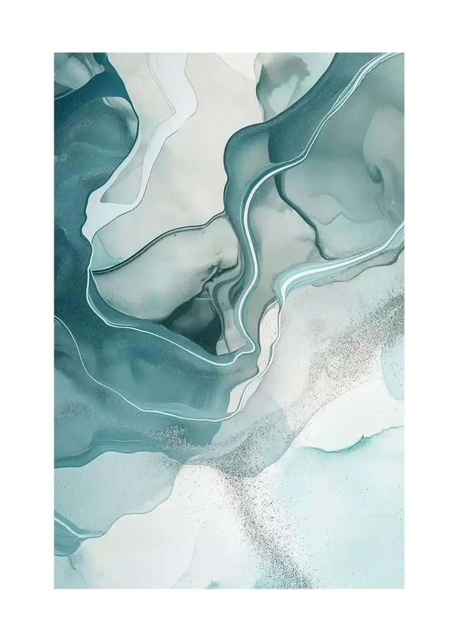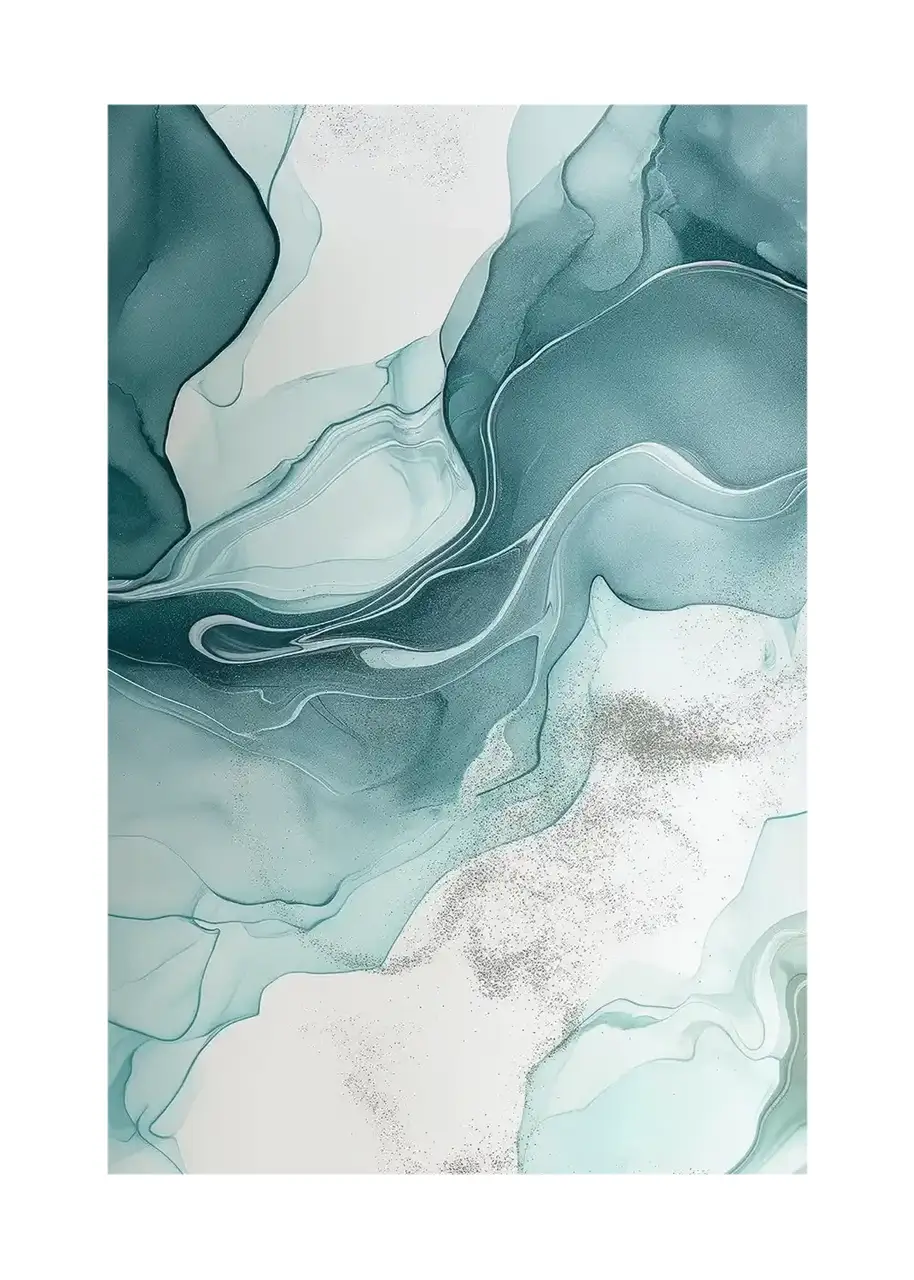Zestaw trzech plakatów abstrakcyjnych Rozlane akryle – turkus
